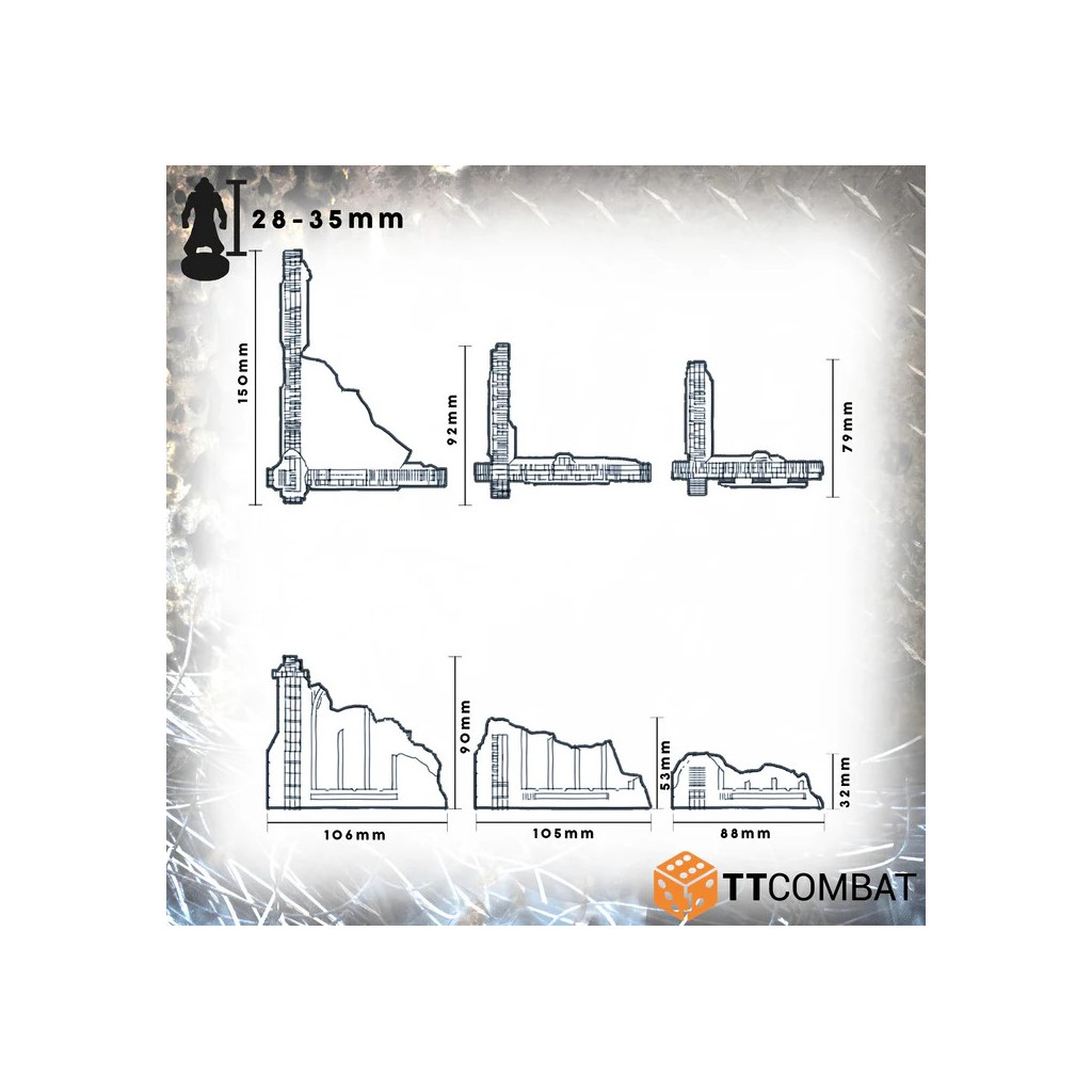 The Gothic Ruined Walls kit is made from 3mm Pre-Coloured MDF using hard-wearing UV Ink. It is a great scenery kit to use in sci-fi skirmish games and will work perfectly with 28-32mm games and miniatures.