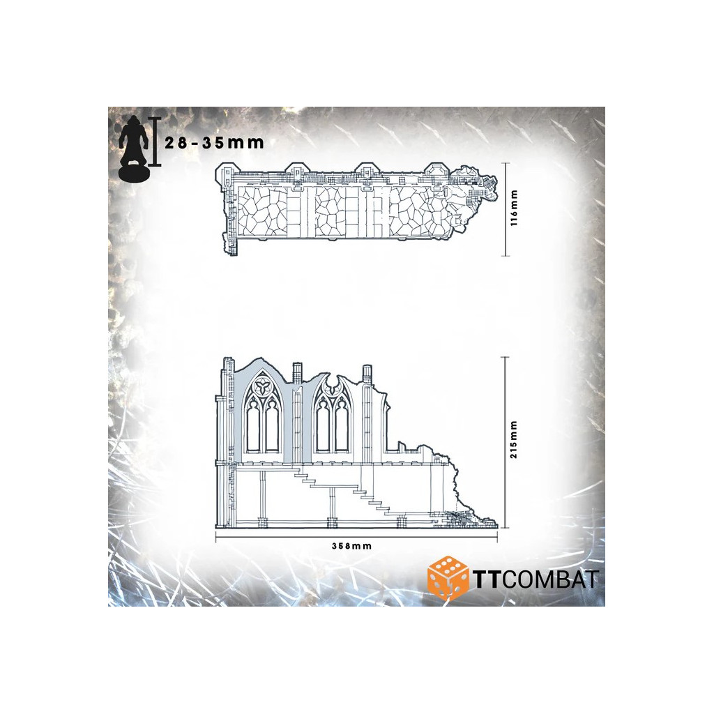 The Ruined Chapel kit is made from 3mm Pre-Coloured MDF using hard-wearing UV Ink. It is a great scenery kit to use in sci-fi skirmish games and will work perfectly with 28-32mm games and miniatures.