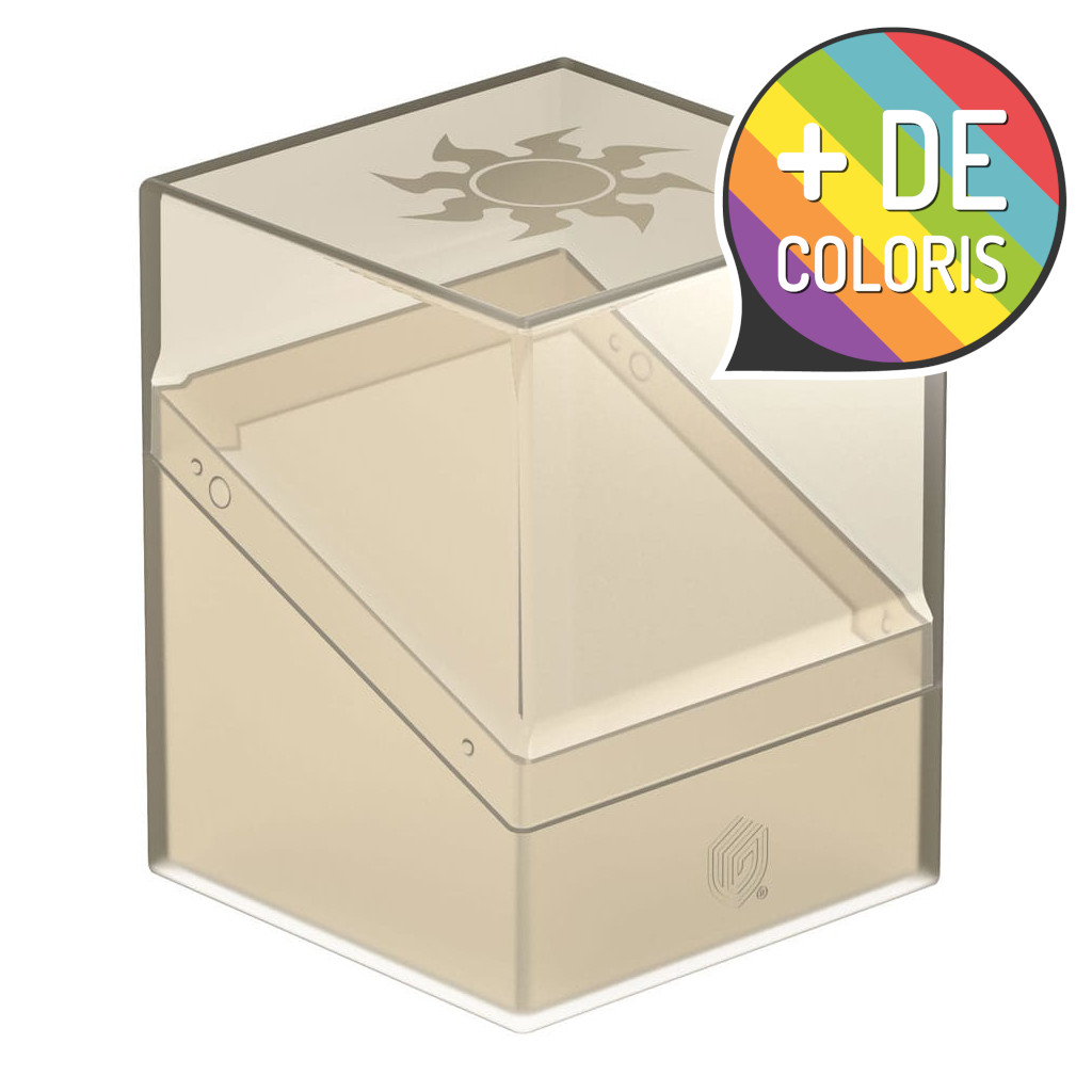 Ultimate Guard's Boulder 100+ Hybrid combines the completely transparent top of the Boulder Clear with a soft-touch base in the style of the original Boulder. The officially licensed MTG deck box is easy to open, but offers reliable protection for your cards thanks to its sturdy case and secure closure. The Boulder 100+ Hybrid holds up to 100 double-sleeved cards and is suitable for all Magic: The Gathering formats such as Commander (EDH), Standard or Modern.