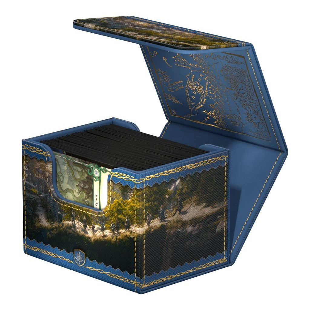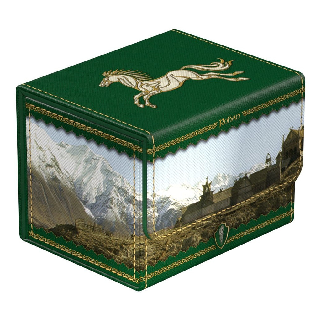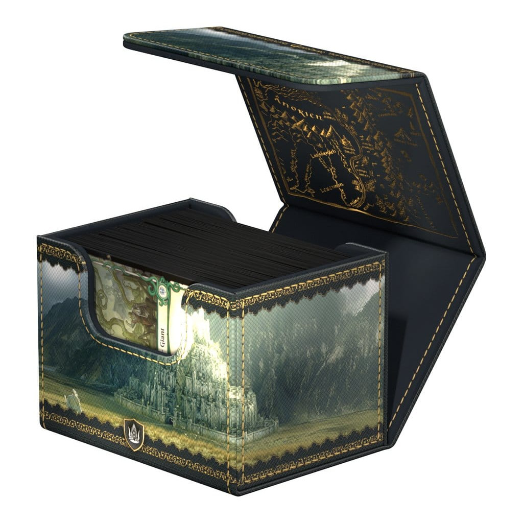 The Sidewinder 100+ Xenoskin is a high-quality TCG deck box that offers premium card protection thanks to its resistant Xenoskin material, microfiber inner lining, and strong magnetic closure, all while still granting easy and convenient access to the cards inside. The deck boxes from Ultimate Guard's official The Lord of the Rings™ edition "Places of Middle-earth" are printed in full color and are optimized to hold 100 double-sleeved cards in Ultimate Guard sleeves.