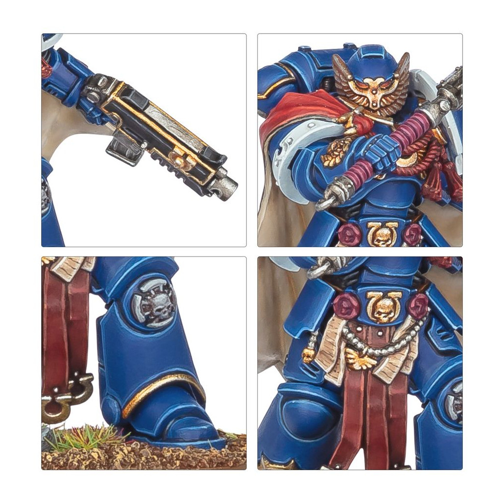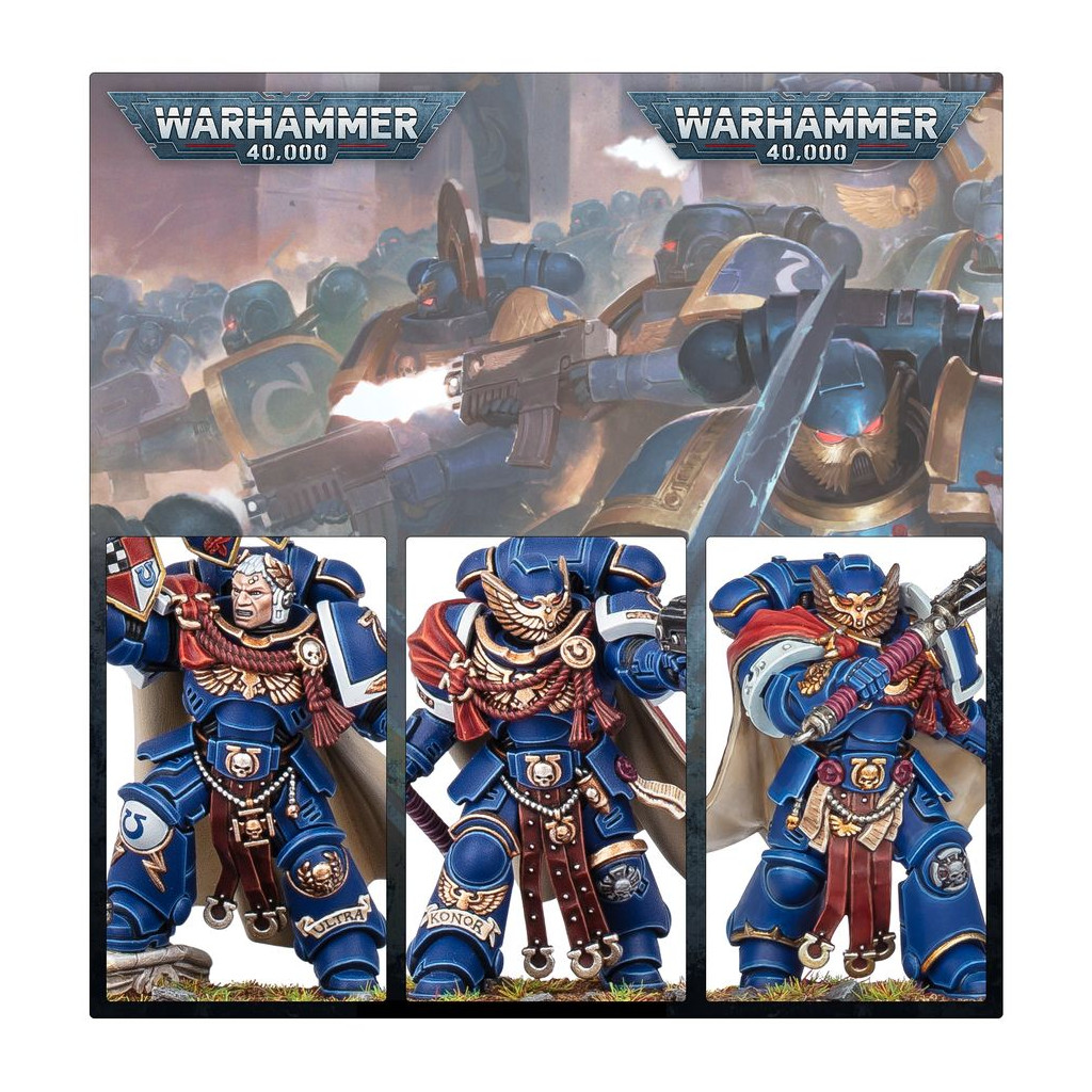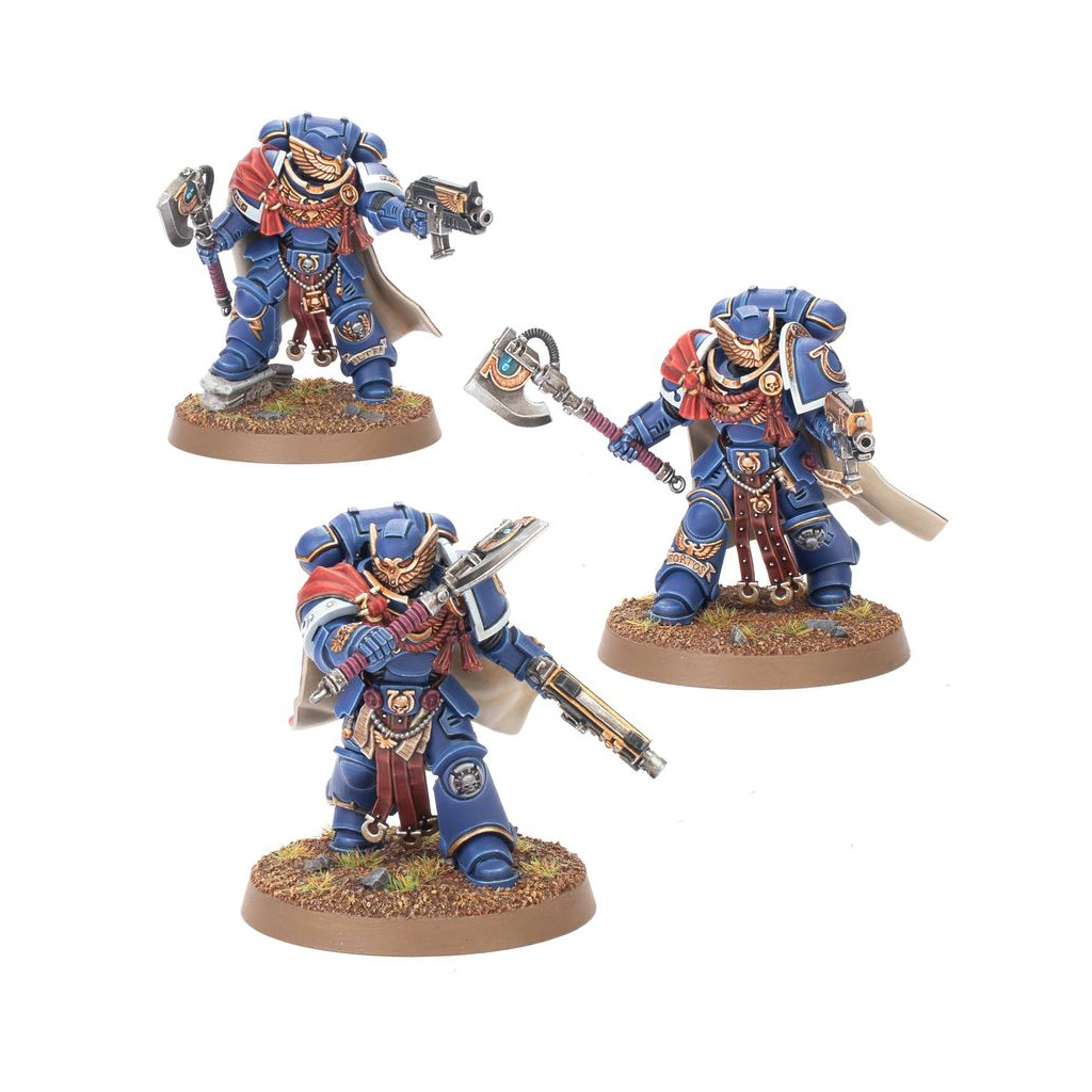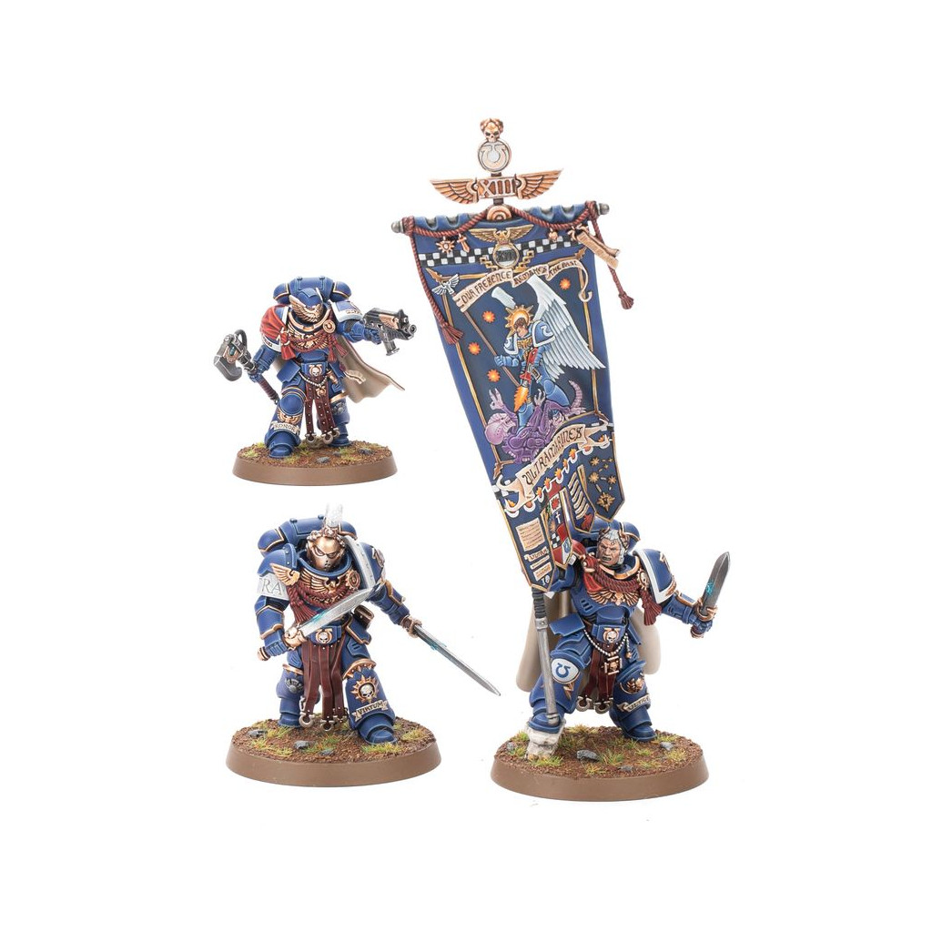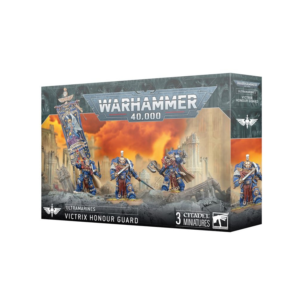 This multipart plastic kit builds three Victrix Honour Guard, elite Space Marine bodyguards for your Ultramarines armies in games of Warhammer 40,000. These powerful and durable warriors will ensure your key leaders remain effective for as long as possible, while also increasing the damage output of your force. This highly customisable kit includes interchangeable leg armour, shoulder pads, master-crafted bolt carbines, power axes, and six helmeted heads. One can alternatively be built as a Chapter Champion, armed with Blades of Honour, and another can be built as a Chapter Ancient, carrying a master-crafted power weapon and the inspiring Banner of Macragge.