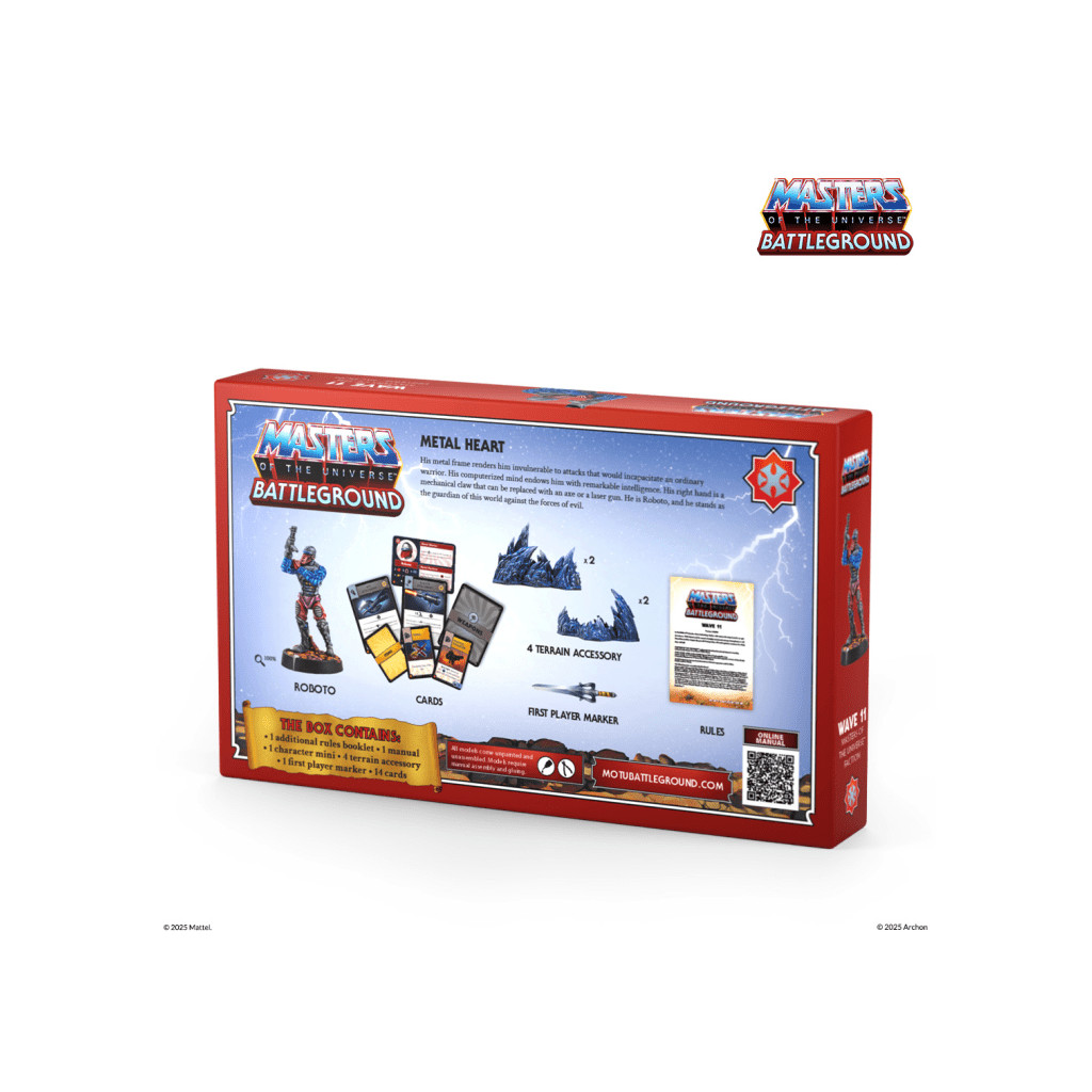 His metal frame renders him invulnerable to attacks that would incapacite an ordinary warrior. His computerized mind endows him with remarkable intelligence. His right hand is a mechanical claw that can be replaced with anaxe or a laser gun. He is Roboto™, and he stands as the guardian of his world against the forces of evil.
