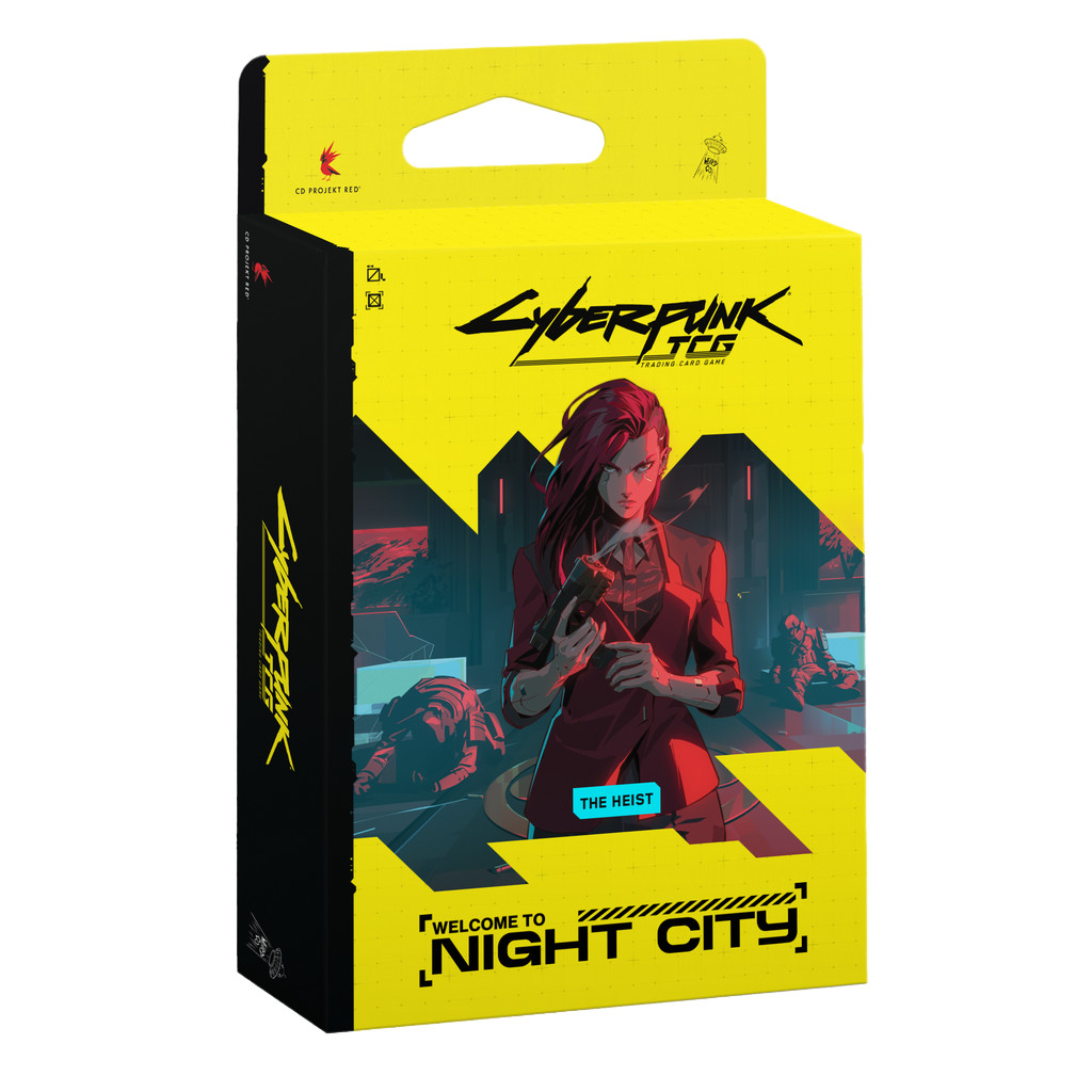 The “Welcome to Night City” Starter Decks are perfect for introducing your players to Cyberpunk TCG. Each deck includes a 40-card playable deck featuring 3 Legends and a full set of 6 dice—everything you need to play.