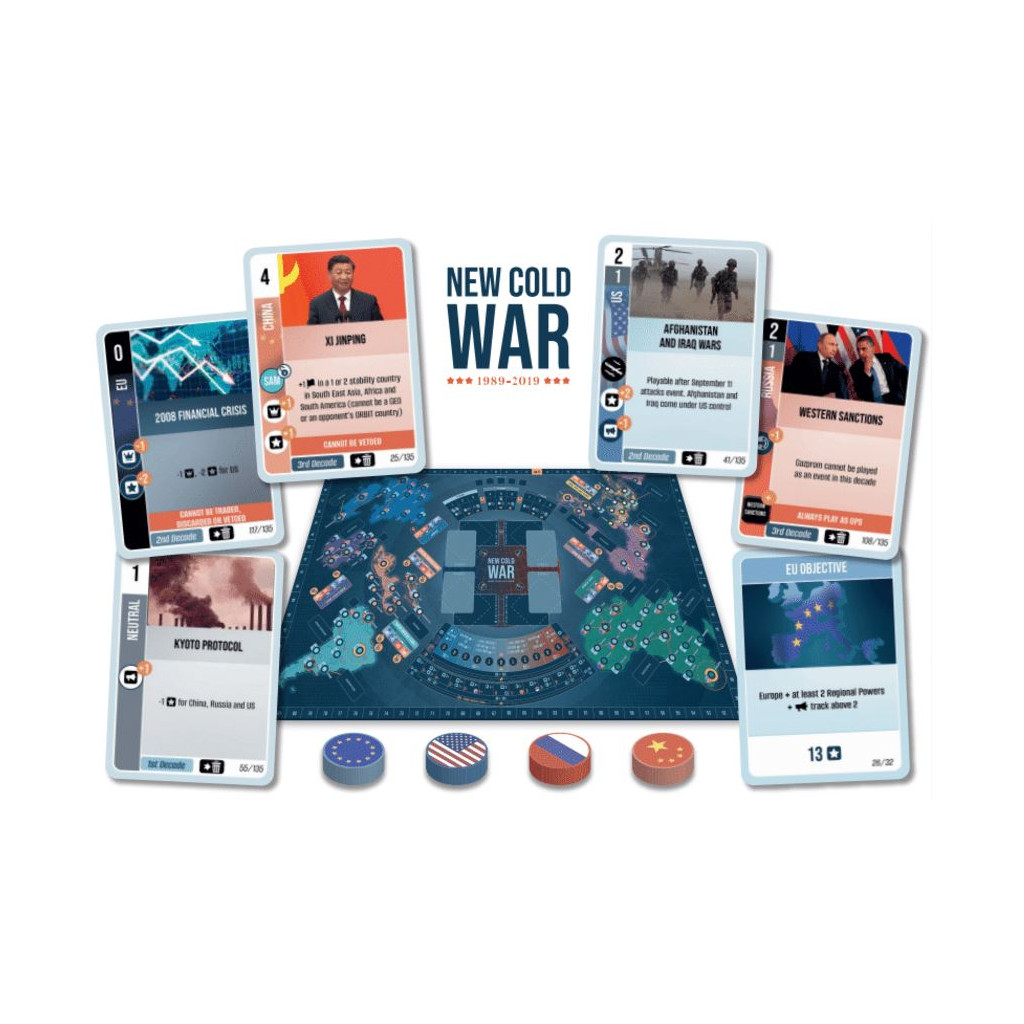 New Cold War uses a Card-Driven game mechanic through the 135 most relevant historical events that have taken place during the 30 years in which the game takes place.