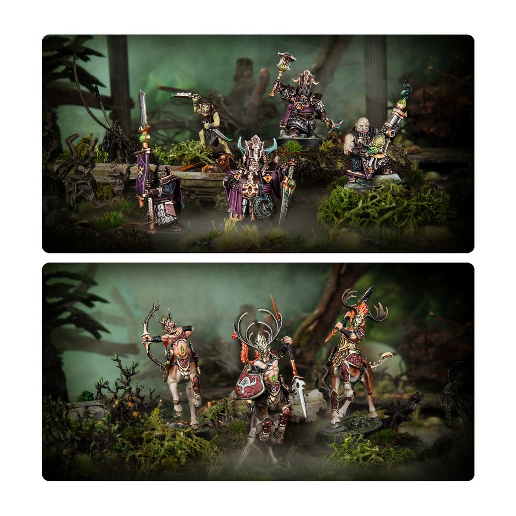 In the great forest of the Spitewood, life magic surges through root and bough, and the power of the god Kurnoth grows. Lead your warband through its twisting paths to battle your rivals and claim the treasures beneath its branches !