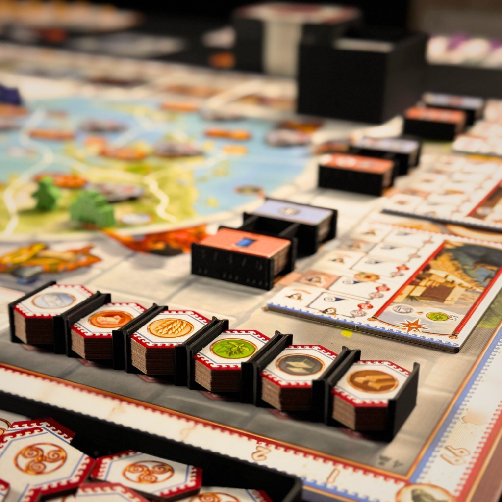 - The player boxes are designed to match each player’s color, making setup easier, speeding up preparation, and clearly defining each player’s space from the very first turn to the last.