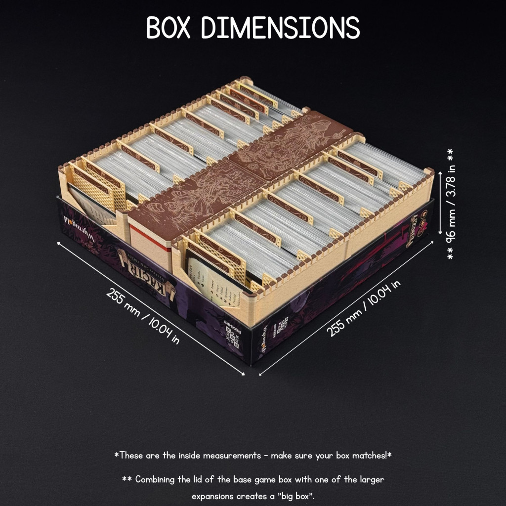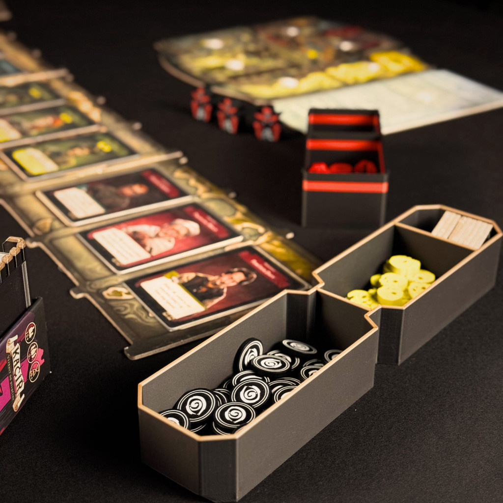 Designed specifically for Pagan: Fate of Roanoke, this custom insert helps maintain clarity and tension by keeping each role’s components neatly separated and easily accessible throughout the game’s evolving investigation and ritual phases.
