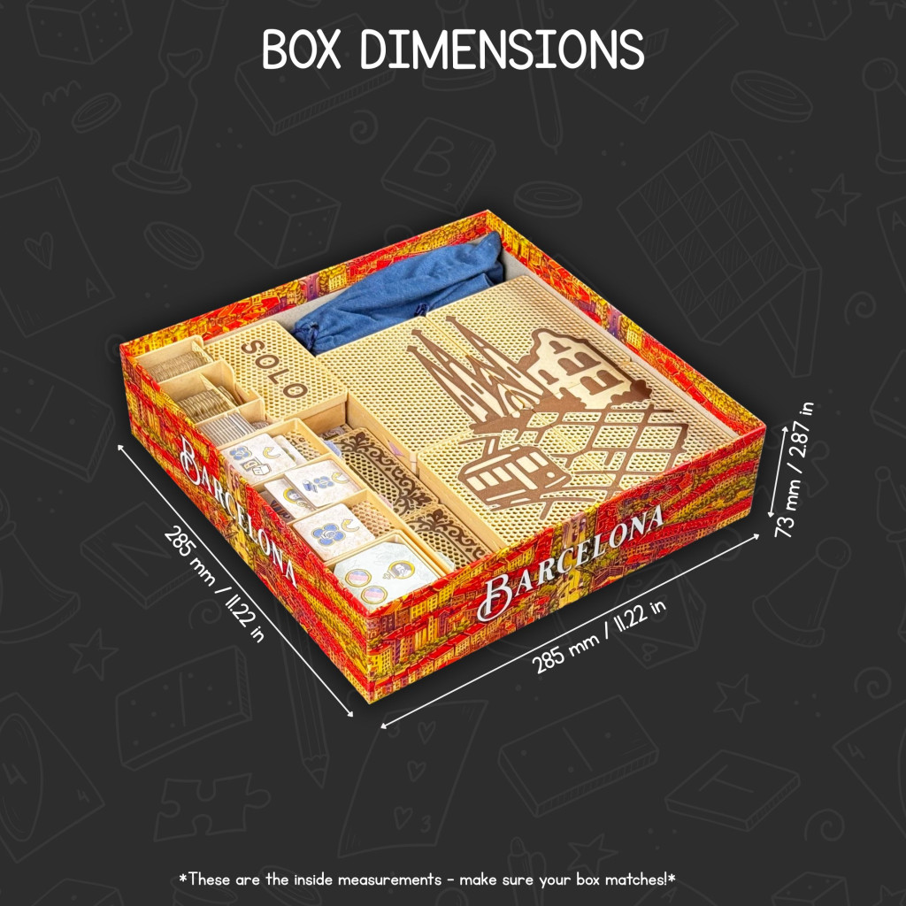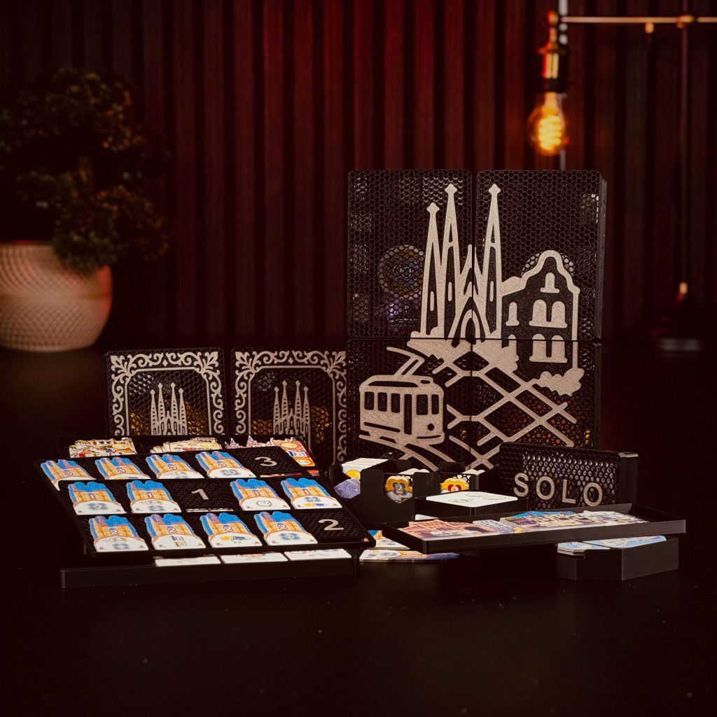 Enhance your Barcelona gameplay with a refined insert that keeps districts, trams, and the iconic Sagrada tiles perfectly organized and ready to play.