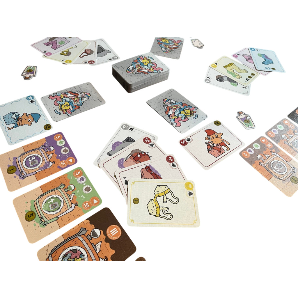 In this card game, adventurers bring their sticky, cursed items for your mischievous goblins to clean. Each turn, players distribute dirty adventure gear into their basket and their opponents' baskets, aiming to maximize value combinations without going bankrupt.