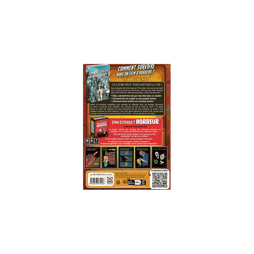 Have a perfect thriller night with this box set specially designed to survive the worst killers and other atrocities from horror movies! With the Movie Horror Clichés card game, hunt down clichés in your favorite movies to win the game.