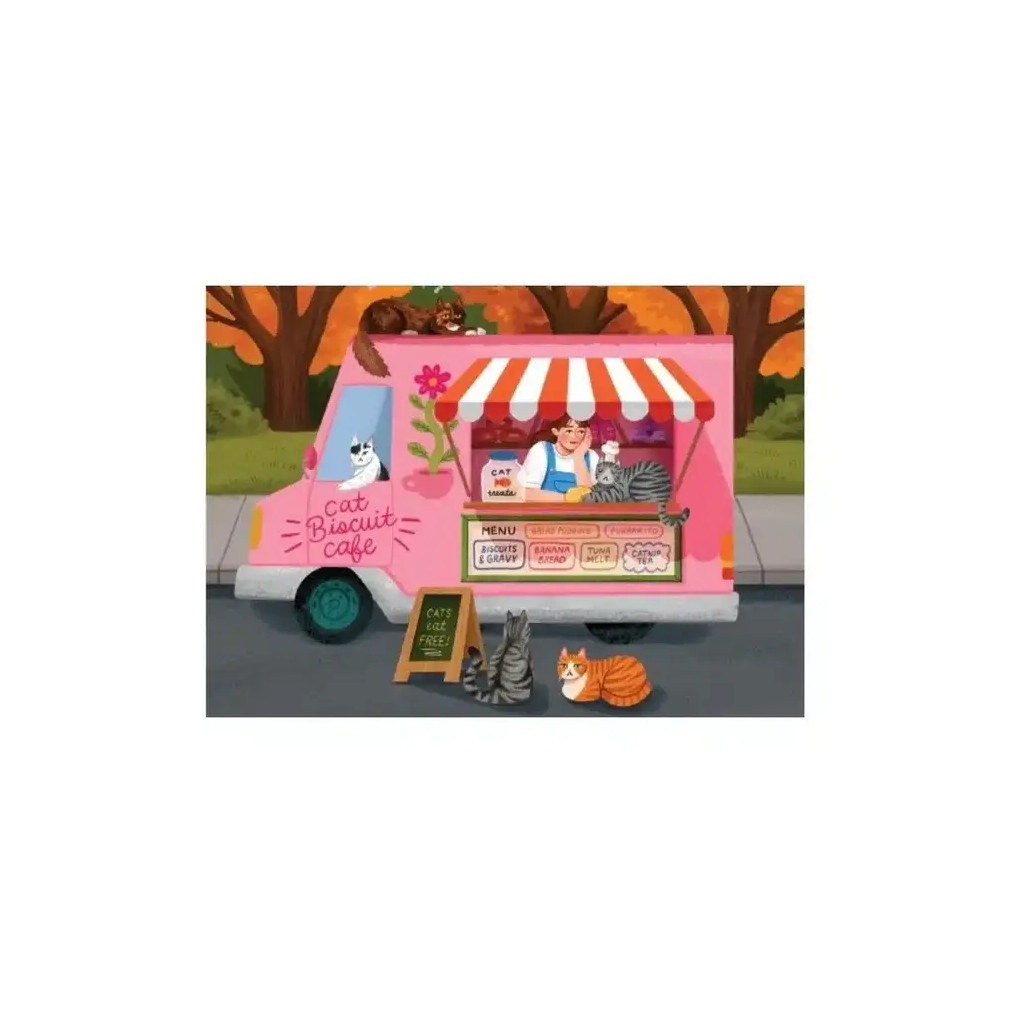 Le mini puzzle Cat Food Truck de Trevell de 99 pièces. Illustré par Karen Cook, ce puzzle nous plonge dans un concept ludique : un food truck spécialement conçu pour les chats ! Entouré de délicieuses options de mets pour félins, ce camion coloré et animé est un véritable paradis culinaire pour nos compagnons à quatre pattes.