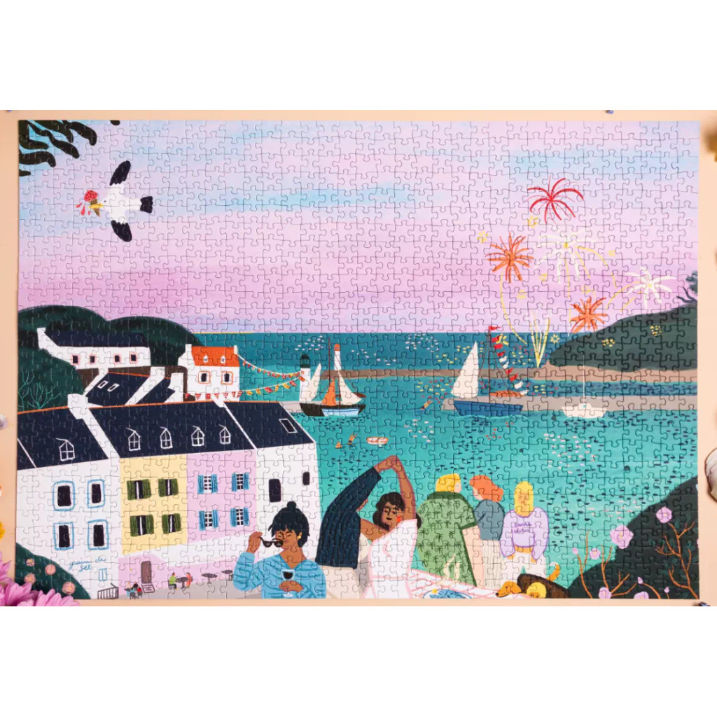 Le puzzle La fête du port de Sauzon est un puzzle composé de 1000 pièces de la marque Les éditions Heol. Illustré par Eva Gallen, une artiste française, ce puzzle vous embarque à Belle-Île, en Bretagne. Vous naviguerez au milieu du soleil, du ressac de la mer, de la musique et de la bonne humeur.