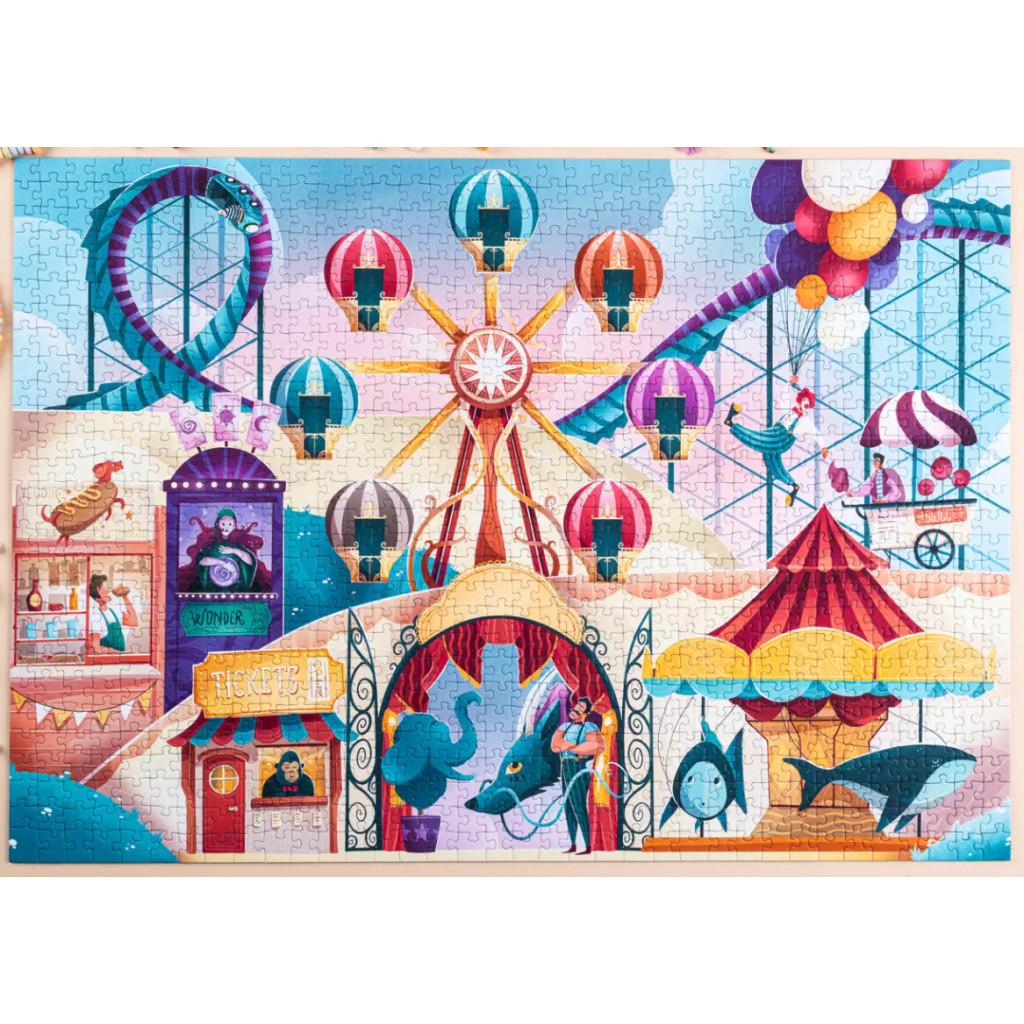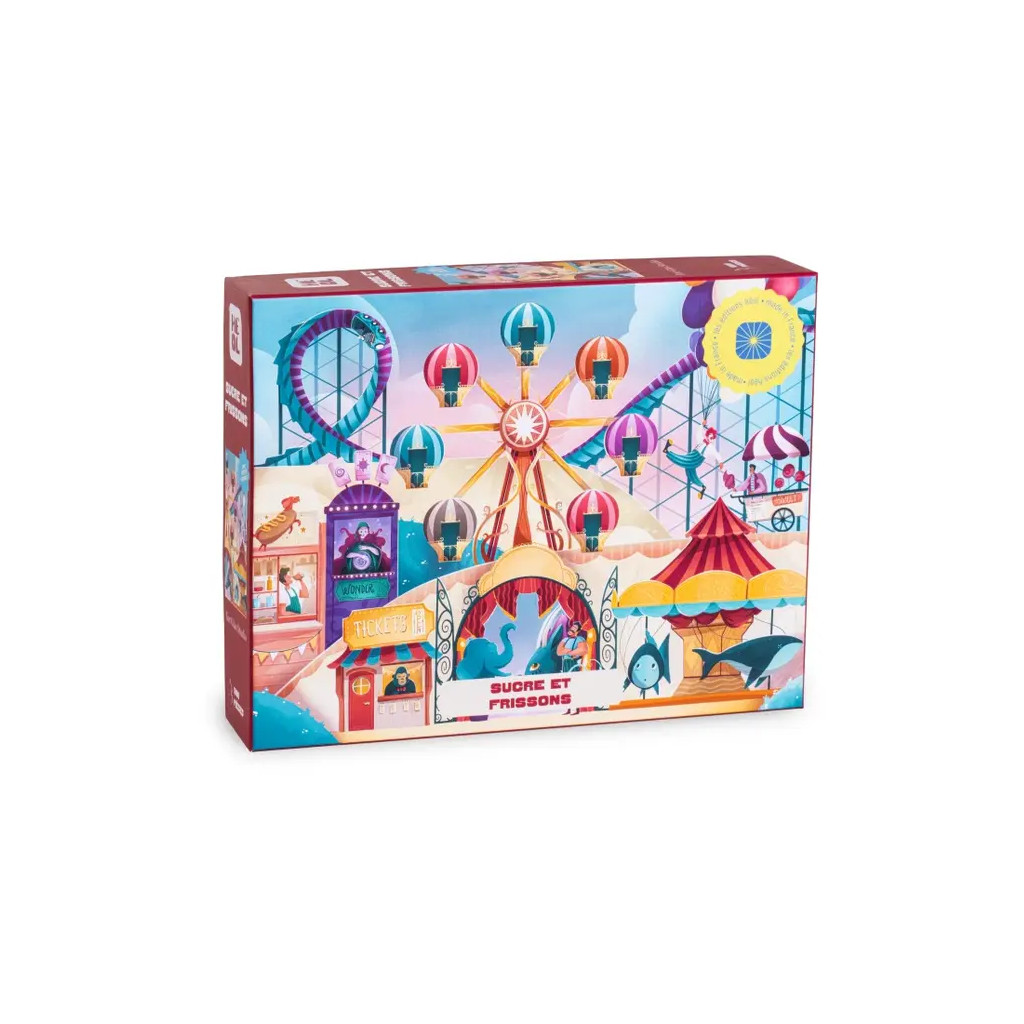 Puzzle - Sucre et frissons - 1000 pièces Le puzzle Sucre et frissons est un puzzle composé de 1000 pièces de la marque Les éditions Heol. Illustré par Eor Glas, un artiste français, ce puzzle vous invite à passer un moment sucré et frissonnant dans cette fête foraine onirique. Vous passerez un moment sur un grand huit, à déguster un veggie-doggie, à écouter la bonne aventure et bien dautres.