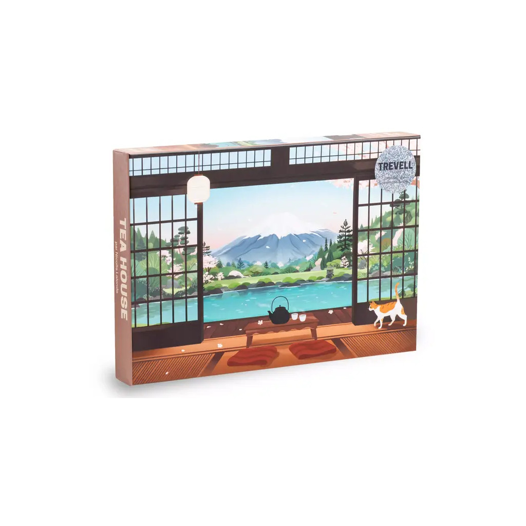 Le puzzle Tea House est un puzzle Trevell de 1000 pièces. Illustré par Nicolle Lalonde, ce puzzle nous invite à prendre le thé dans cette maison japonaise, tout en profitant de la vue époustouflante sur le Mont Fuji. Les arbres en fleurs et le lac amènent un peu plus de douceur dans ce moment suspendu.