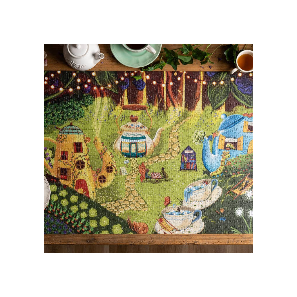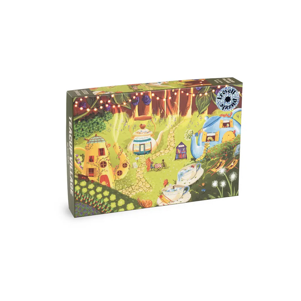 Le puzzle Teacup Village de Trevell est composé de 1000 pièces. illustré par Kyria McKie, ce puzzle vous fait découvrir un petit univers miniature où les petits insectes vivent ensemble dans le village constitué de maisons théière !