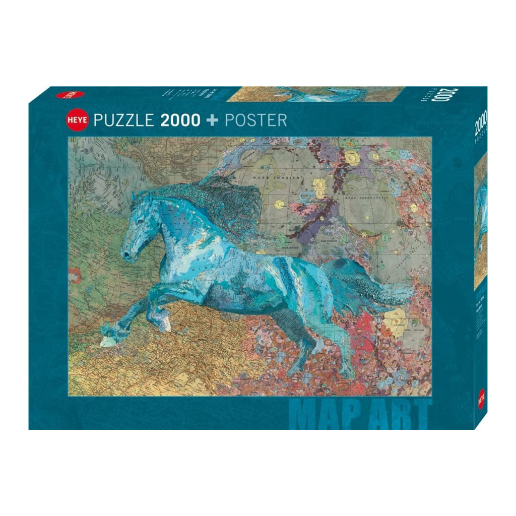 Découvrez une œuvre impressionnante mêlant cartographie et art animalier avec le puzzle Map Horse de 2000 pièces. Un visuel fascinant qui marie la silhouette majestueuse d’un cheval à des fragments de cartes anciennes, pour un résultat à la fois mystérieux, esthétique et captivant.
