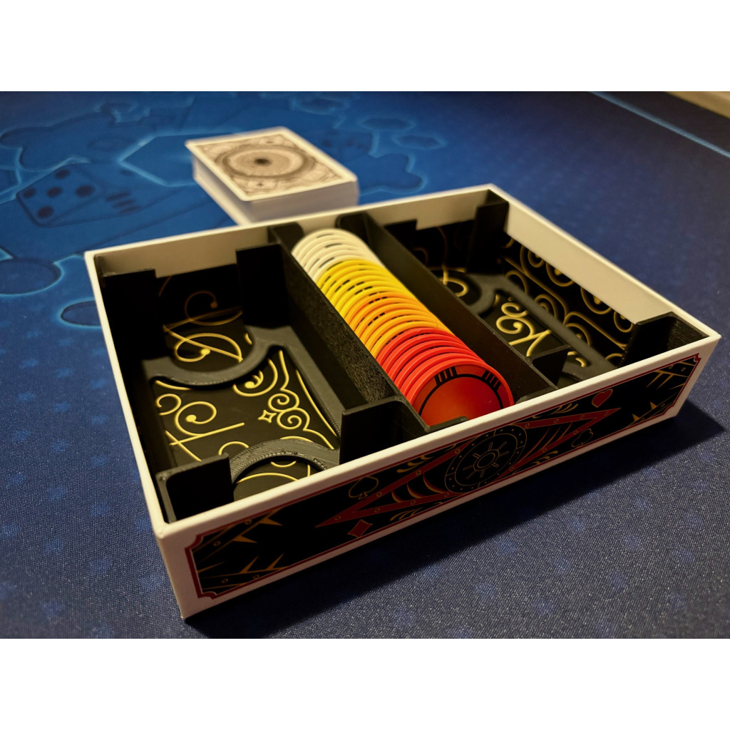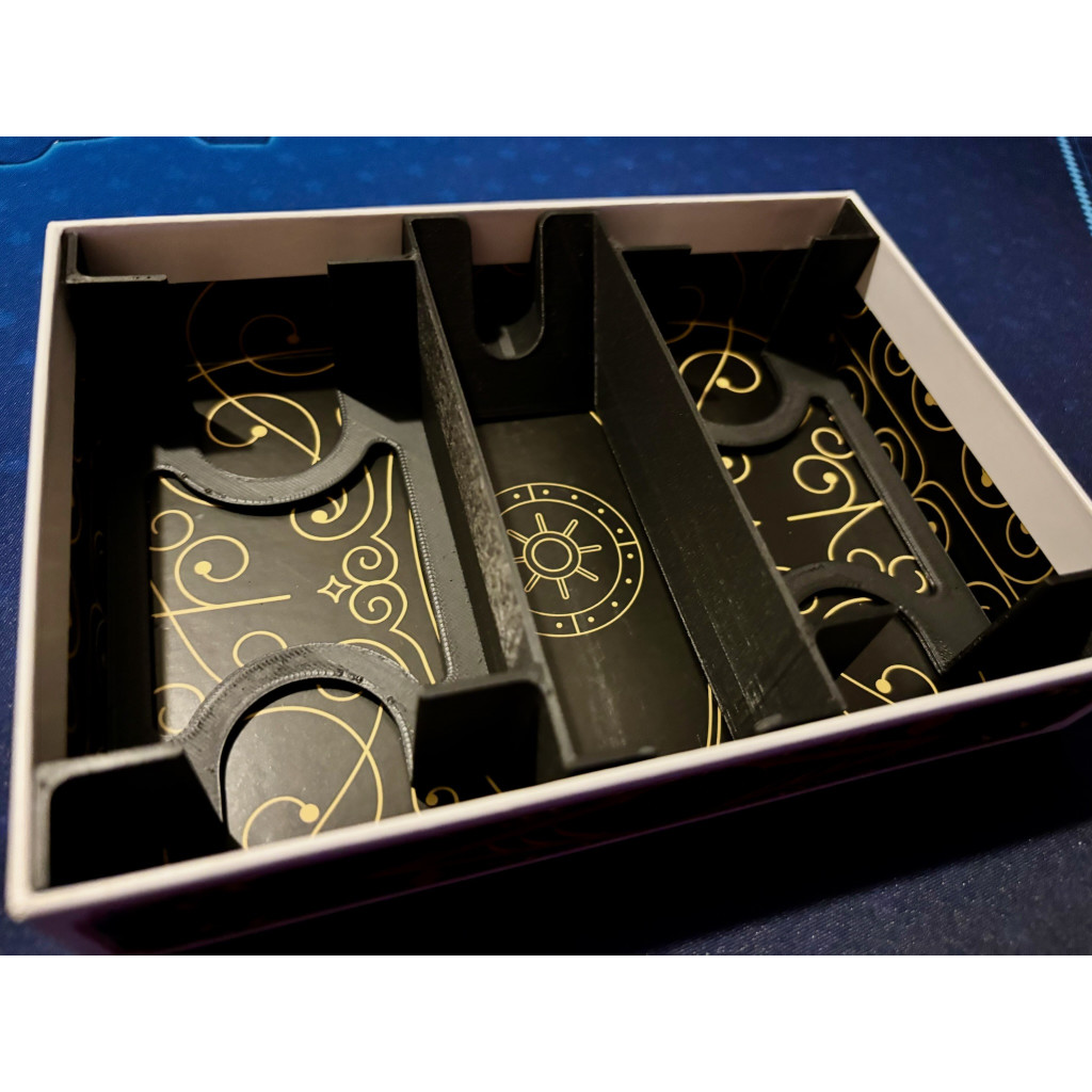 Fabriqué en France à partir de matériaux bio-ressourcés, cet insert sur mesure met fin au désordre dans votre boîte de The Gang. Chaque composant cartes, jetons trouve sa place dans un compartiment dédié, sleeves comprises.