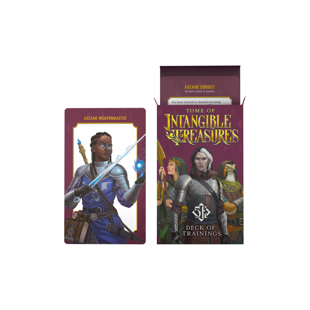 Un jeu de 60 cartes de taille tarot, représentant chacune des formations avancées et épiques du livre Tome of Intangible Treasures. Ces cartes peuvent être utilisées indépendamment du livre, mais elles fonctionnent mieux comme cartes de référence et supports pour les joueurs lorsqu’elles sont utilisées ensemble. Chaque carte est magnifiquement illustrée avec des portraits de personnages et des scènes représentant chaque formation.