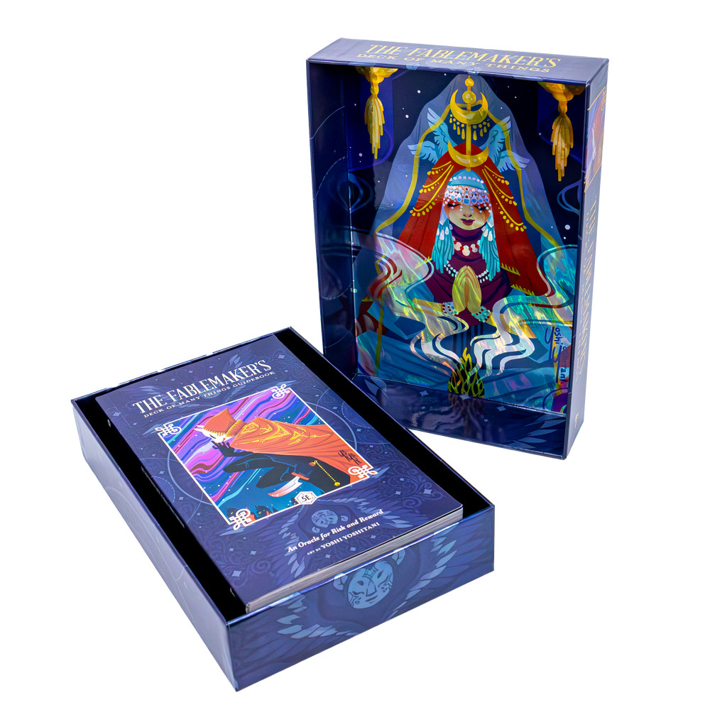 Fablemaker’s Deck of Many Things Holo-Foil Box Set insuffle une nouvelle puissance à cet objet magique classique. Au lieu de 22 cartes, vous en trouverez 46. Dans cette édition spéciale à finition holographique, les cartes de l’Overworld brillent de reflets arc-en-ciel, tandis que celles de l’Underworld captent et reflètent les couleurs de la lumière ambiante.