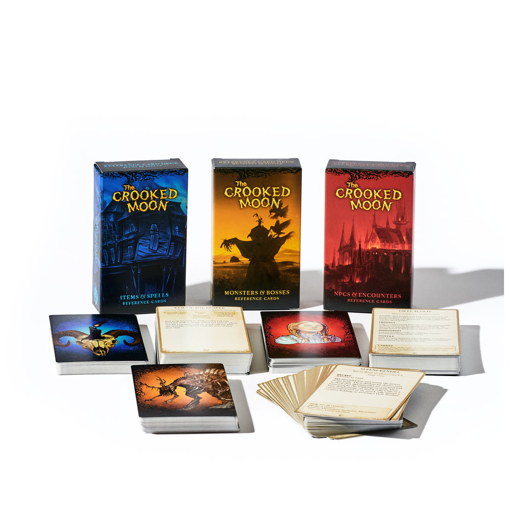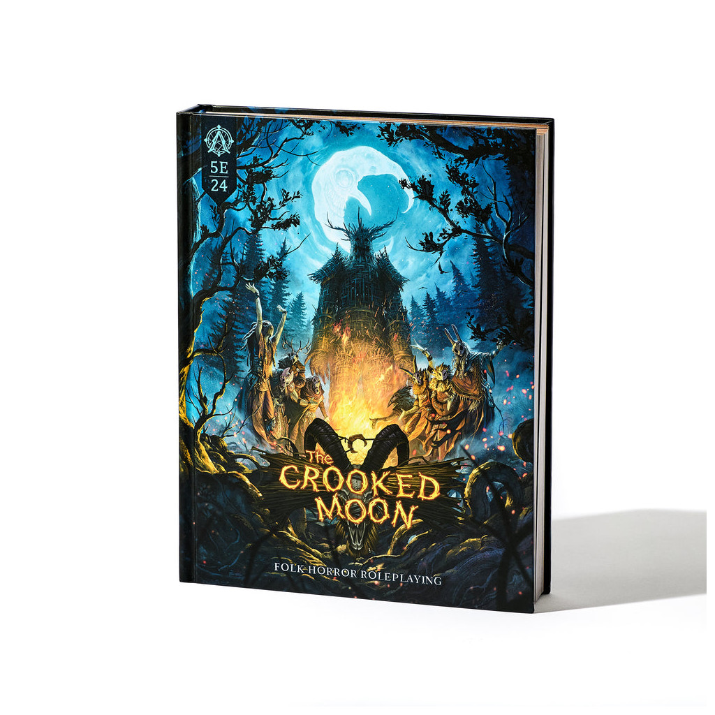 Crooked Moon est un jeu de rôle d'horreur fantastique. Ce coffret contient tout le nécessaire pour lancer votre campagne : le livre de base, un écran et des accessoires de jeu.