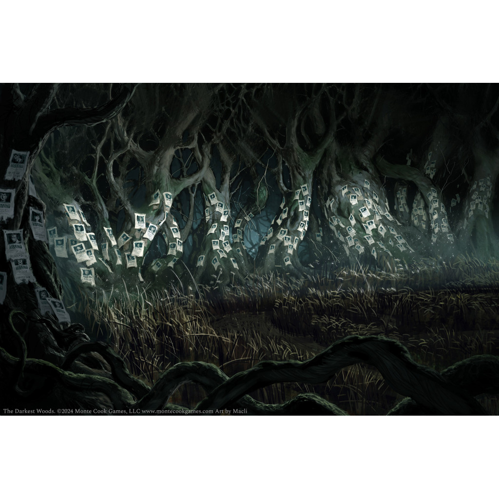 The Darkest Woods est une expérience d'horreur indépendante de tout système qui s'intègre de manière fluide à votre campagne existante,quel que soit le jeu et le système que vous utilisez.