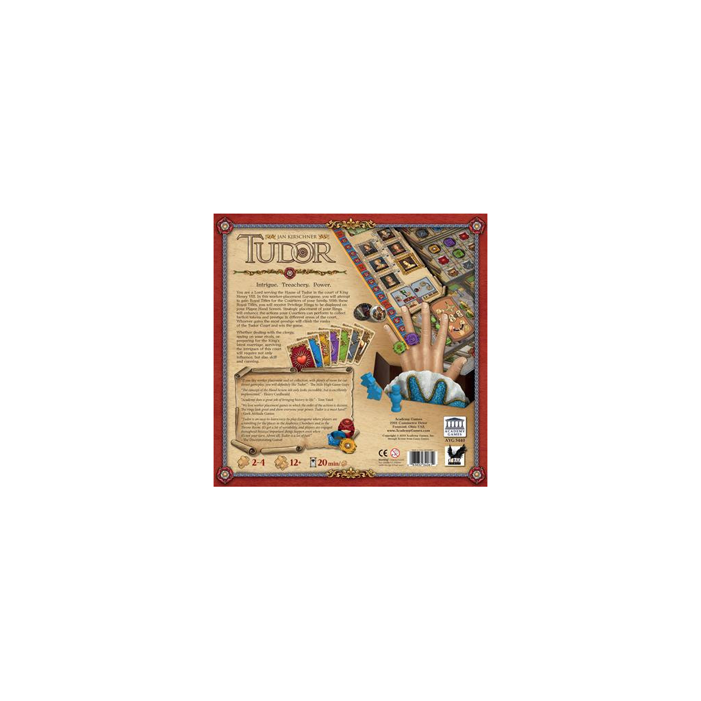 Entrez dans la cour opulente du roi Henri VIII et luttez pour le pouvoir et le prestige dans Tudor Court of Henry VIII, un Eurogame captivant de placement d’ouvriers par Academy Games. Affrontez-vous de 2 à 4 joueurs en positionnant stratégiquement vos courtisans, en collectant des ressources diplomatiques et en manœuvrant pour dominer la salle du trône.