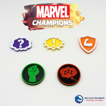 Faites passer votre expérience de Marvel Champions au niveau supérieur avec cet ensemble de jetons de statut haut de gamme ! Conçus pour remplacer les cartes de statut originales, ces jetons offrent un moyen durable et visuellement élégant de suivre l'état des personnages pendant le jeu.