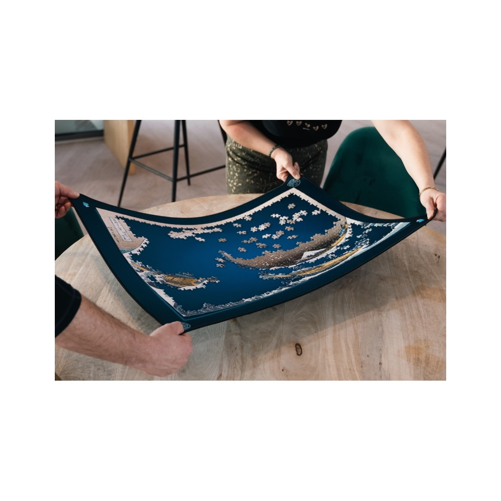 Ce tapis de puzzle de qualité supérieure sera parfait pour la réalisation de vos puzzle 1000 pièces. Conçu en néoprène, il dispose d'une surface antidérapante au dos pour rester bien en place sur votre table et au recto d'une surface d'un bleu magnifique sur lequel vous pourrez aisément faire glisser vos pièces.