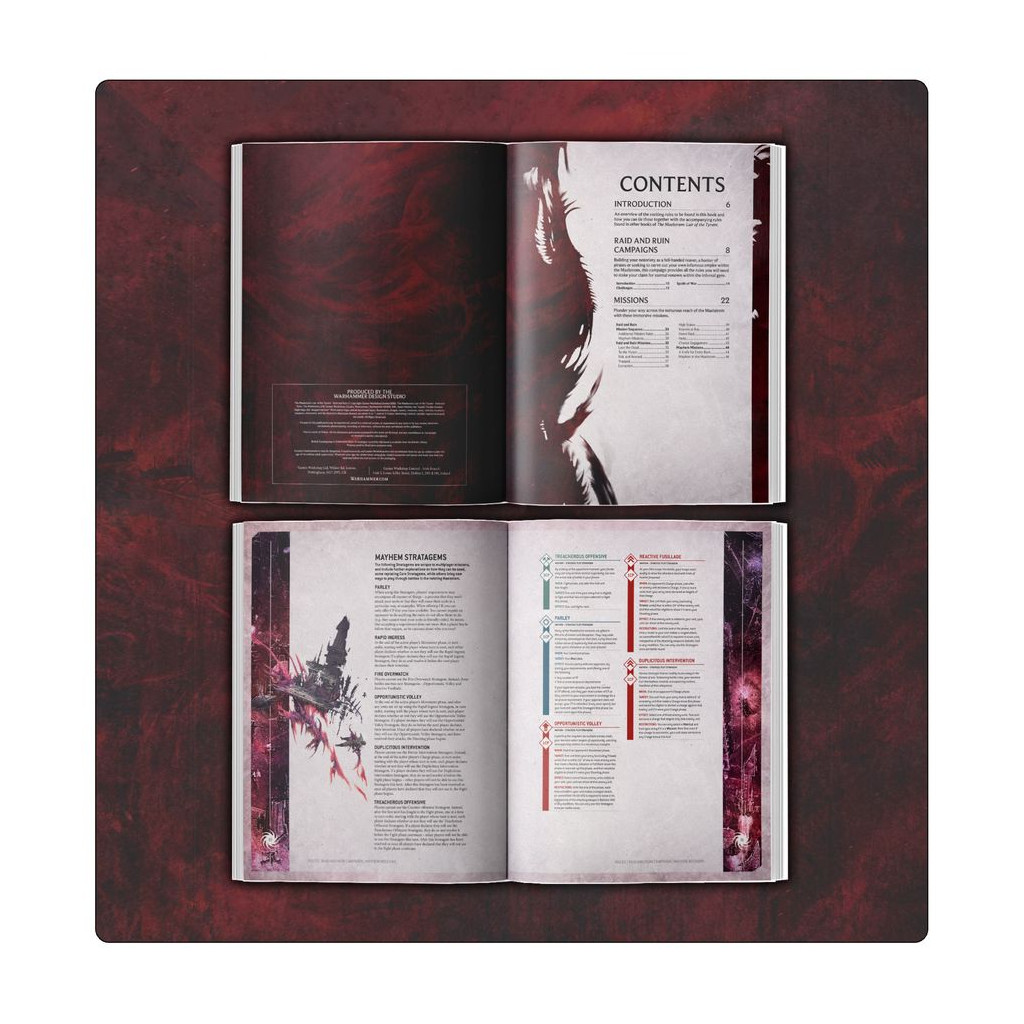 • The Maelstrom: L'Antre du Tyran – Raid et Ruine – Un livre broché de 48 pages proposant une campagne narrative où vous tenterez de prendre le pouvoir et d'amasser des richesses dans le Maelström, ainsi que des missions de jeu égal: vous trouverez 12 missions d'Incursion, 10 missions de Raid et Ruine, et 2 missions d'Empoignade.