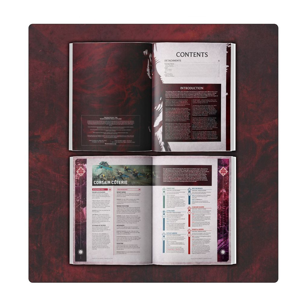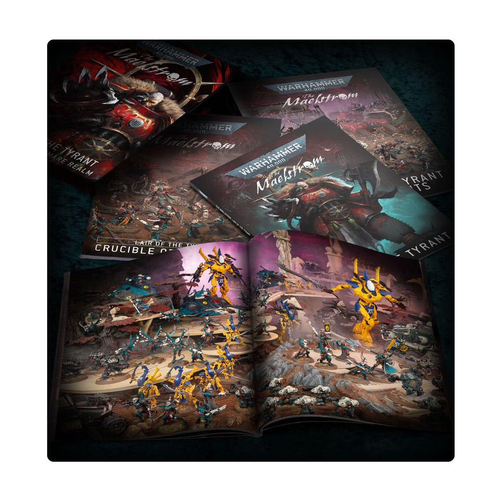 • The Maelstrom: L'Antre du Tyran – Détachements – Un livret broché de 16 pages contenant deux détachements pour les Space Marines du Chaos (les Maraudeurs de Huron et la Bande de Renégats) et pour les Aeldari (les Pillards Sorciers et la Coterie de Corsaires), un pour les Orks (l'Ékipage de Flibuztiers) et un autre pour les Ligues de Votann (les Mercenaires Assermentés).