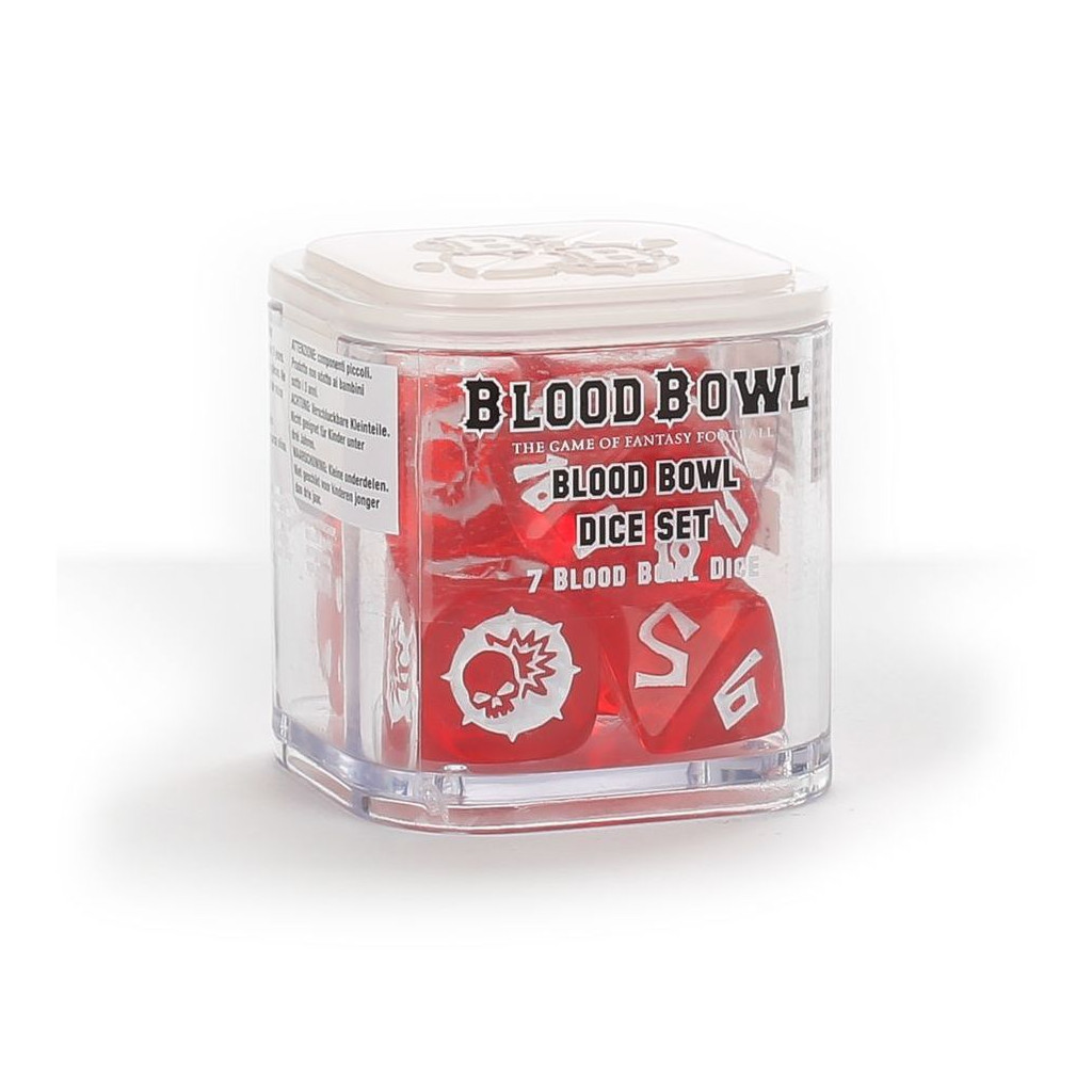 Blood Bowl est un jeu de stratégie, et de chance – tant et plus. En tant que coach de Blood Bowl, vous êtes amené à utiliser un assortiment de dés unique pour résoudre divers tests en cours de match, que ce soit pour jouer le ballon ou pour faire mordre la poussière à l'autre équipe. Ce set universel contient tous les dés nécessaires pour jouer, dans une jolie couleur rouge à marquages blancs.Copyright © 2026 www.philibertnet.com Mentions légales - Politique de confidentialité - Paramétrer les cookies - Plan du site