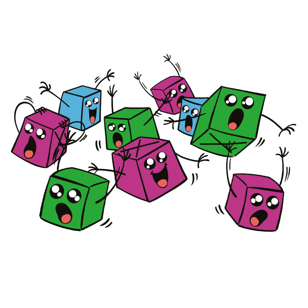 Dans la boite 64 cubes: 10 cubes de chaque couleur et des cubes neutres. Chaque joueur choisit une couleur et prend ses cubes.