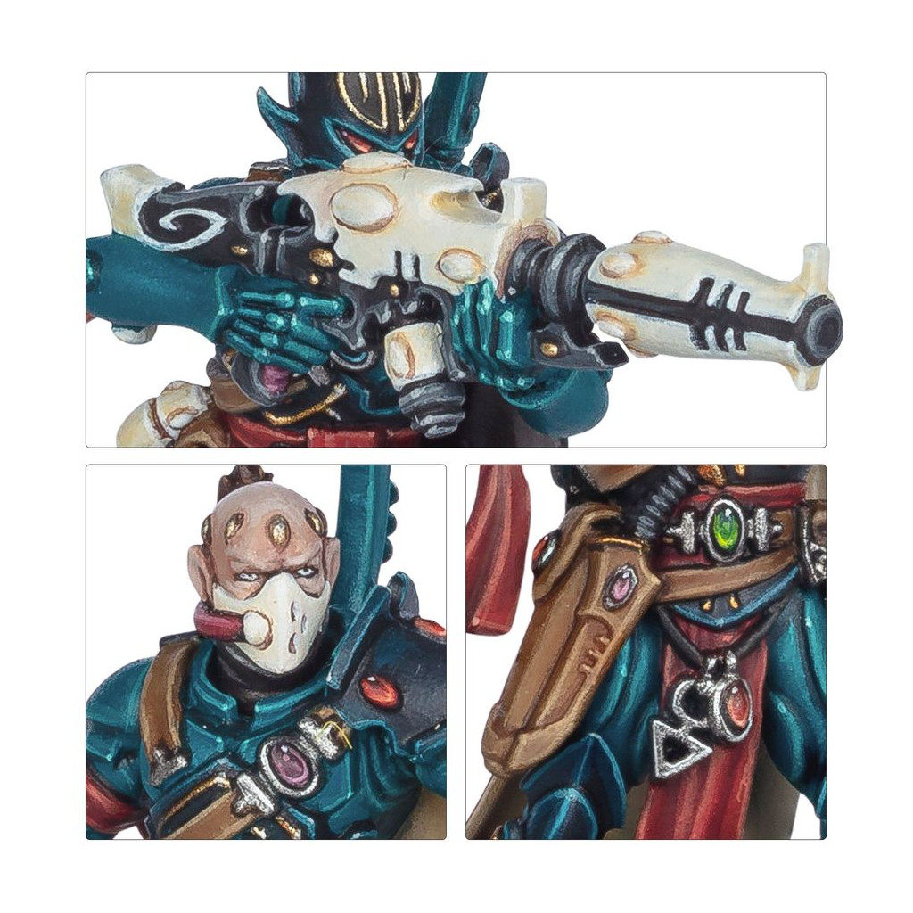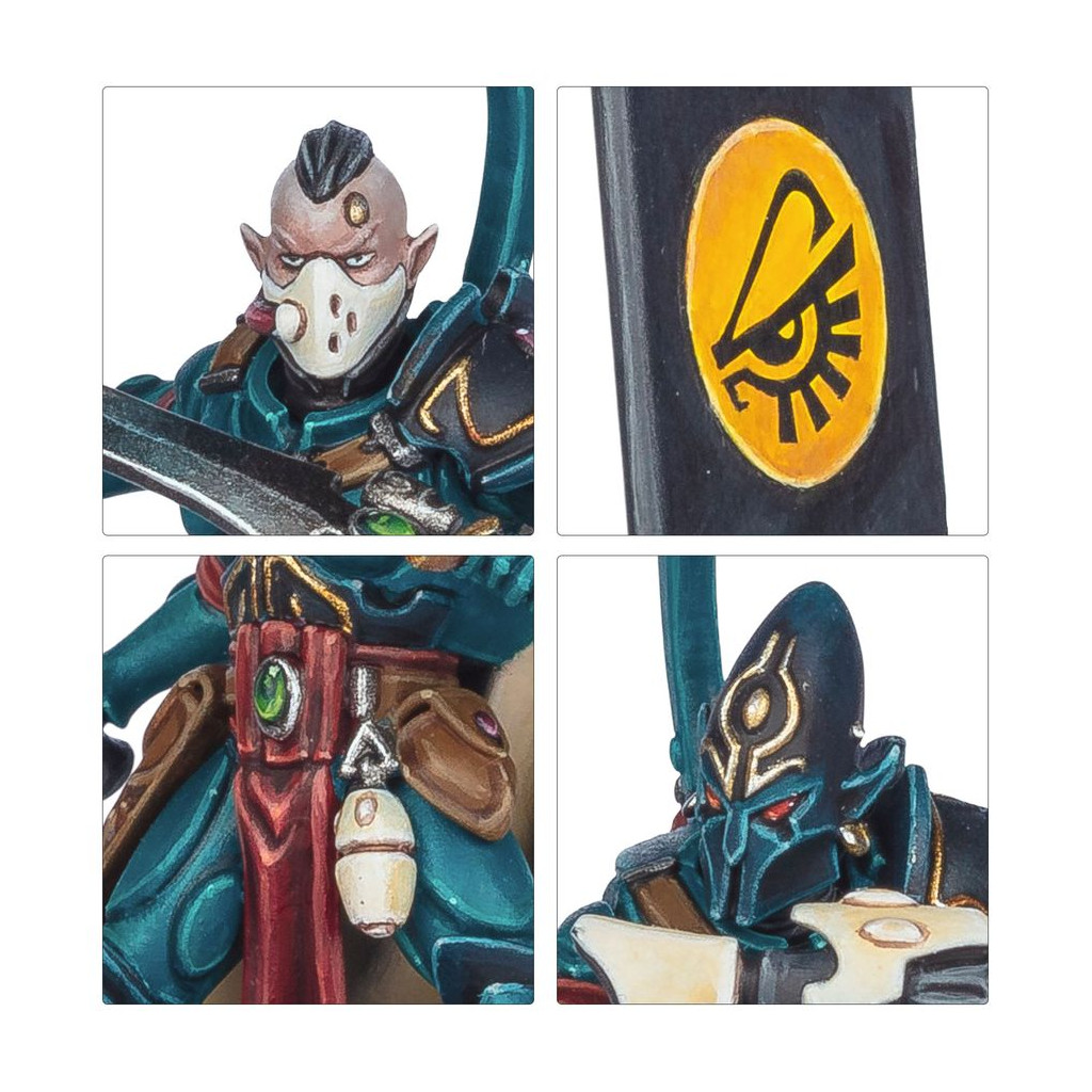 Cette boîte pleine à craquer est idéale pour entamer une nouvelle collection d'Aeldari ou pour étoffer une armée existante, à déchaîner dans les parties de Warhammer 40,000 tout en faisant des économies par rapport à un achat des kits au détail. Le tout formé par ces unités constitue une force rapide et dévastatrice, parfaite pour représenter un Détachement de Pillards Sorciers, dont les règles se trouvent dans The Maelstrom: L'Antre du Tyran – Détachements, disponible séparément.