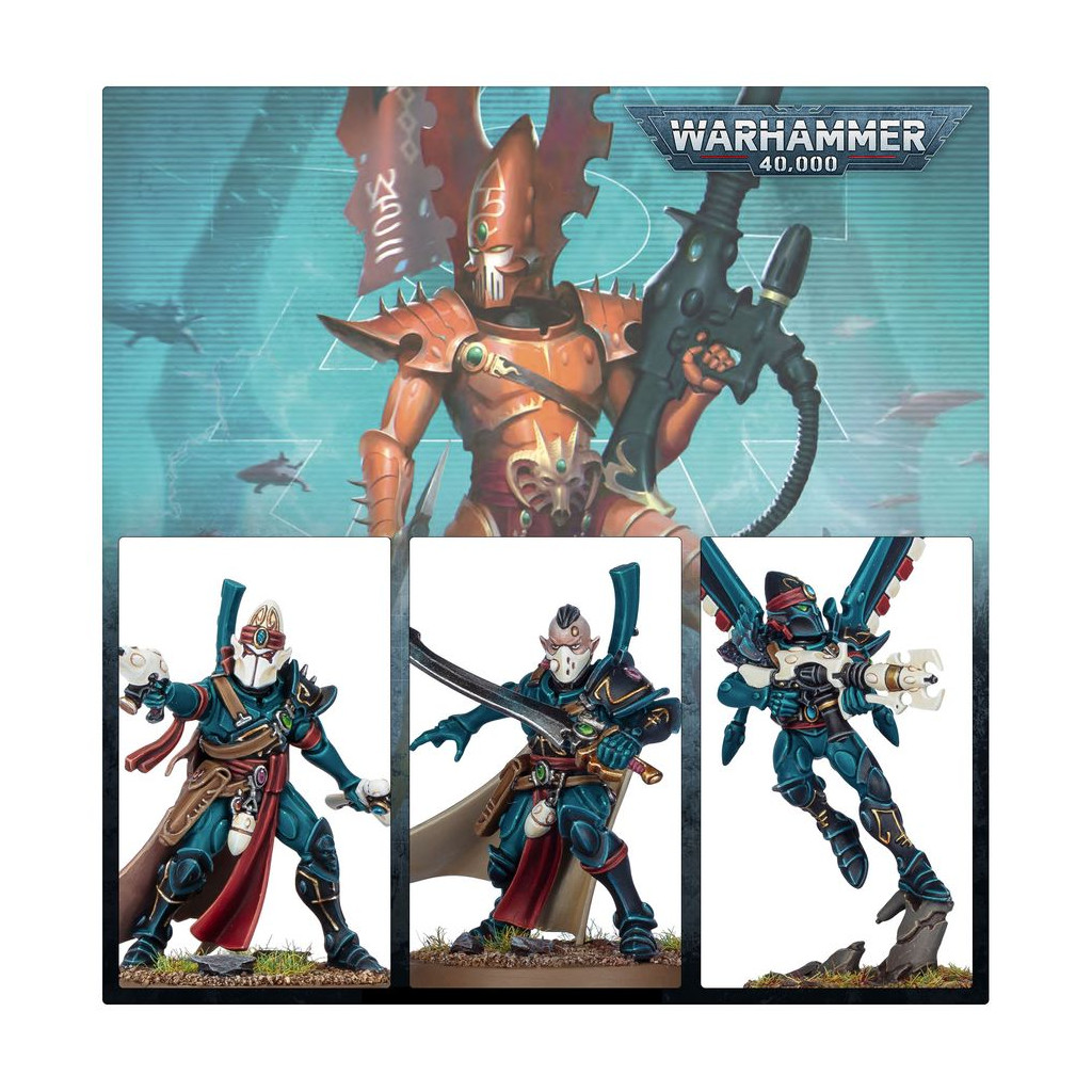Cette boîte permet d'assembler 23 figurines en plastique d'Aeldari: