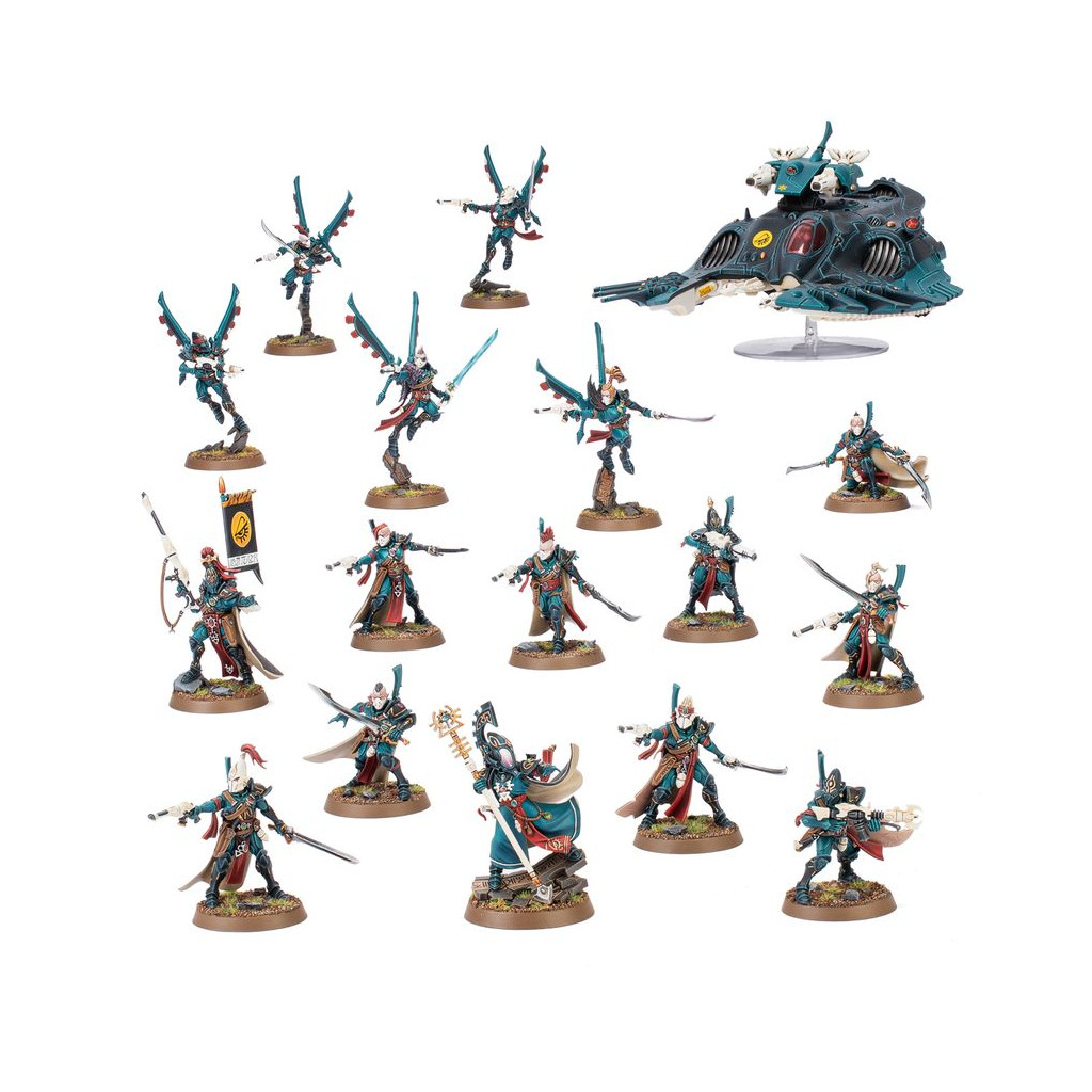 Ce set permet d'assembler 17 figurines en plastique des Aeldari: