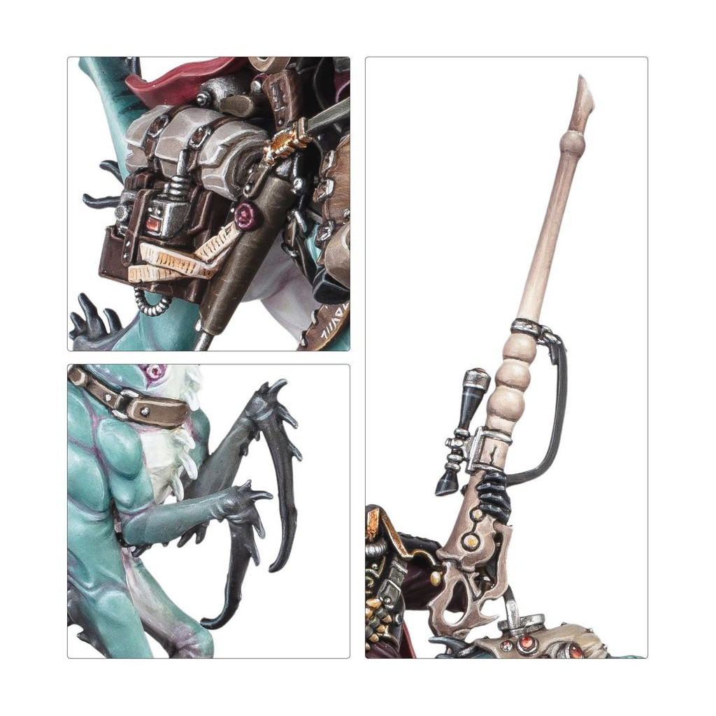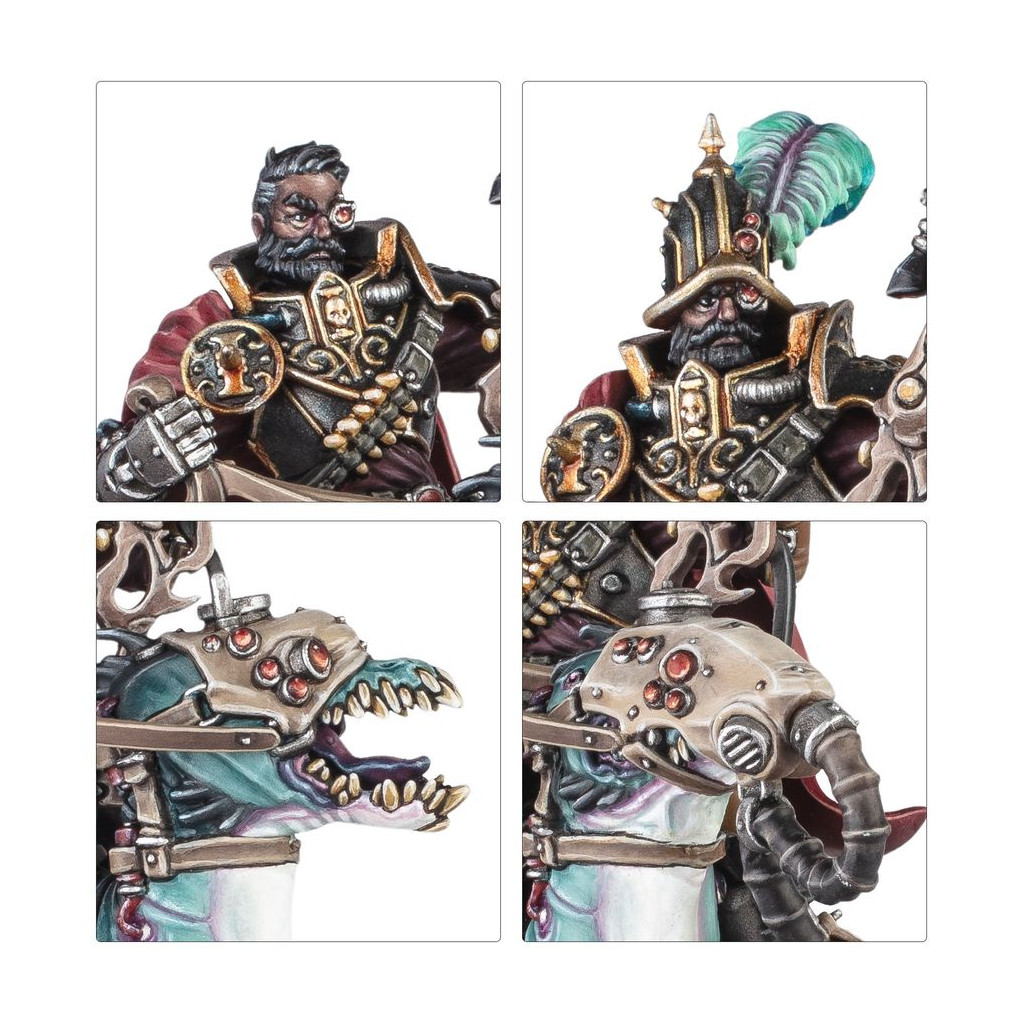 Le kit contient deux têtes pour Kroyle (une casquée et une nue) et deux têtes pour sa monture (une vêtue de sa cagoule de soumission, et l'autre avec les mâchoires libres d'attaquer).
