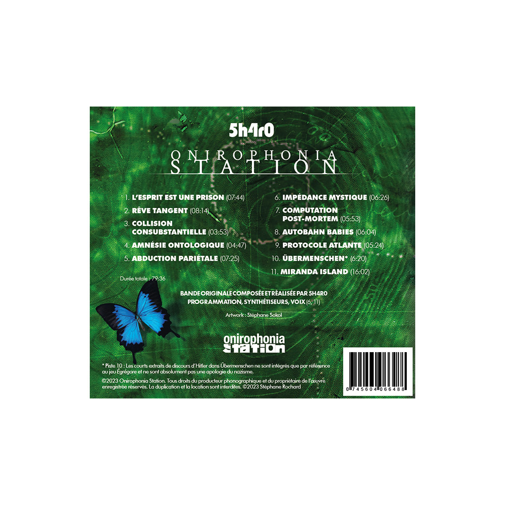* Piste 10 : Les courts extraits de discours d’Hitler dans Übermenschen ne sont intégrés que par référence au jeu Égrégore et ne sont absolument pas une apologie du nazisme.