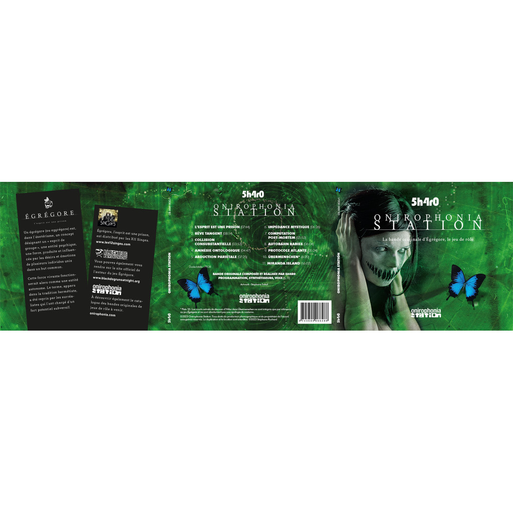 Bande Originale du tragique jeu de rôle ÉGRÉGORE, l’esprit est une prison, par le musicien officiel et animateur des services généraux des laboratoires OTK. Global Healthcare Holding, 5h4r0 - Programmation, synthétiseurs, voix (6, 11)