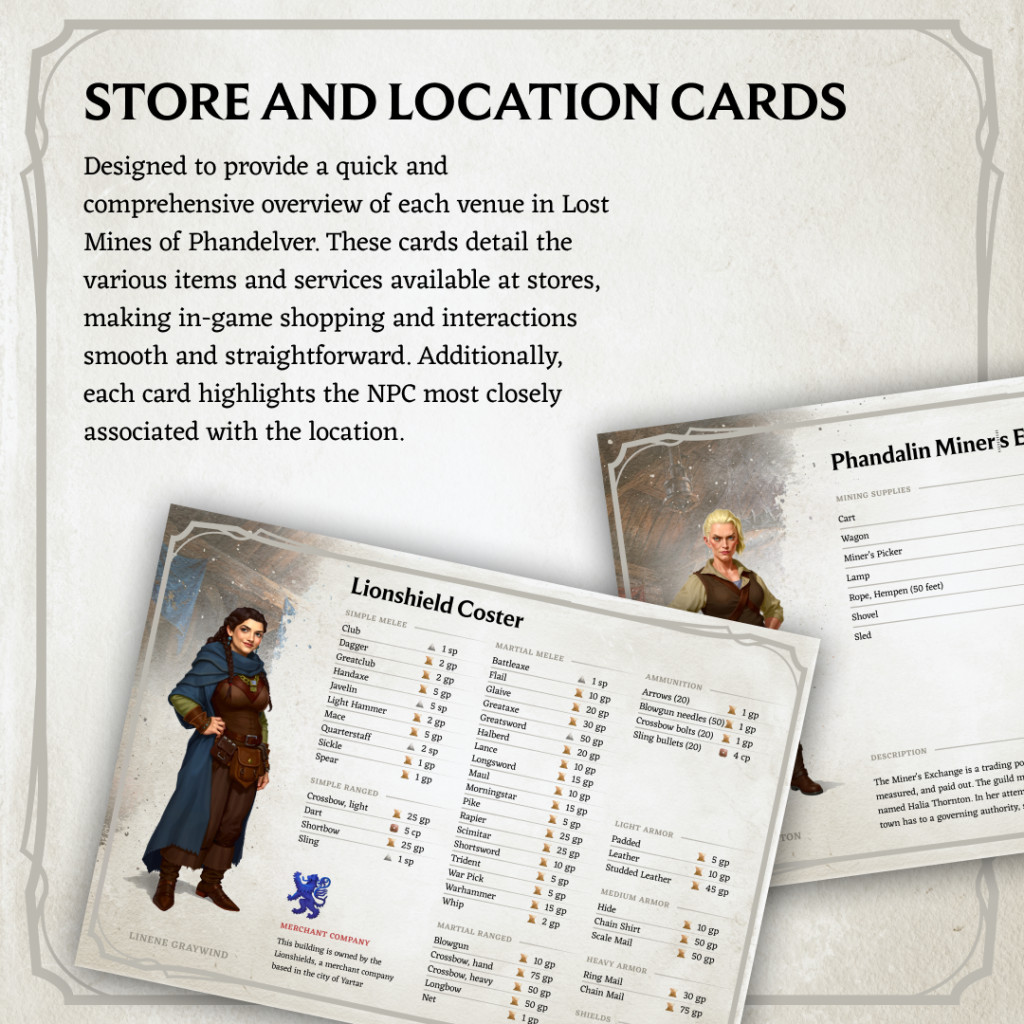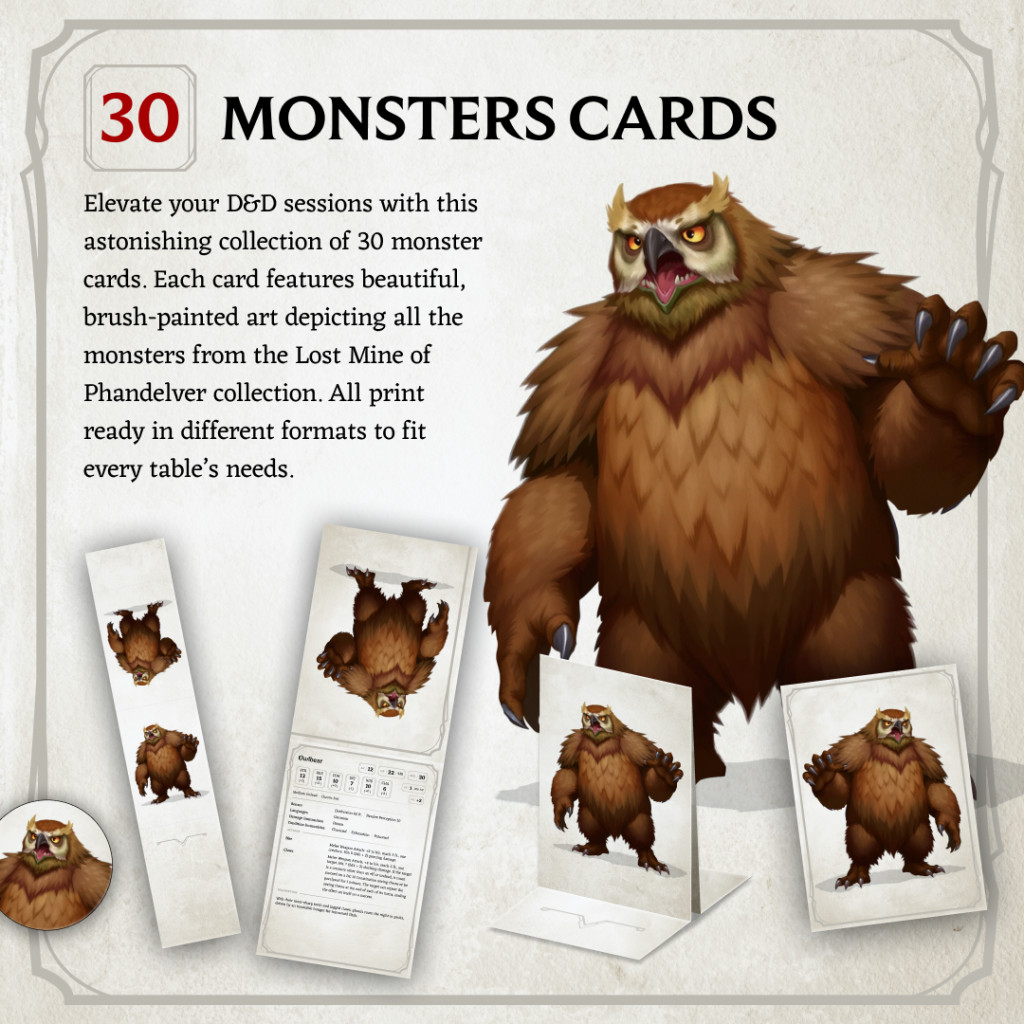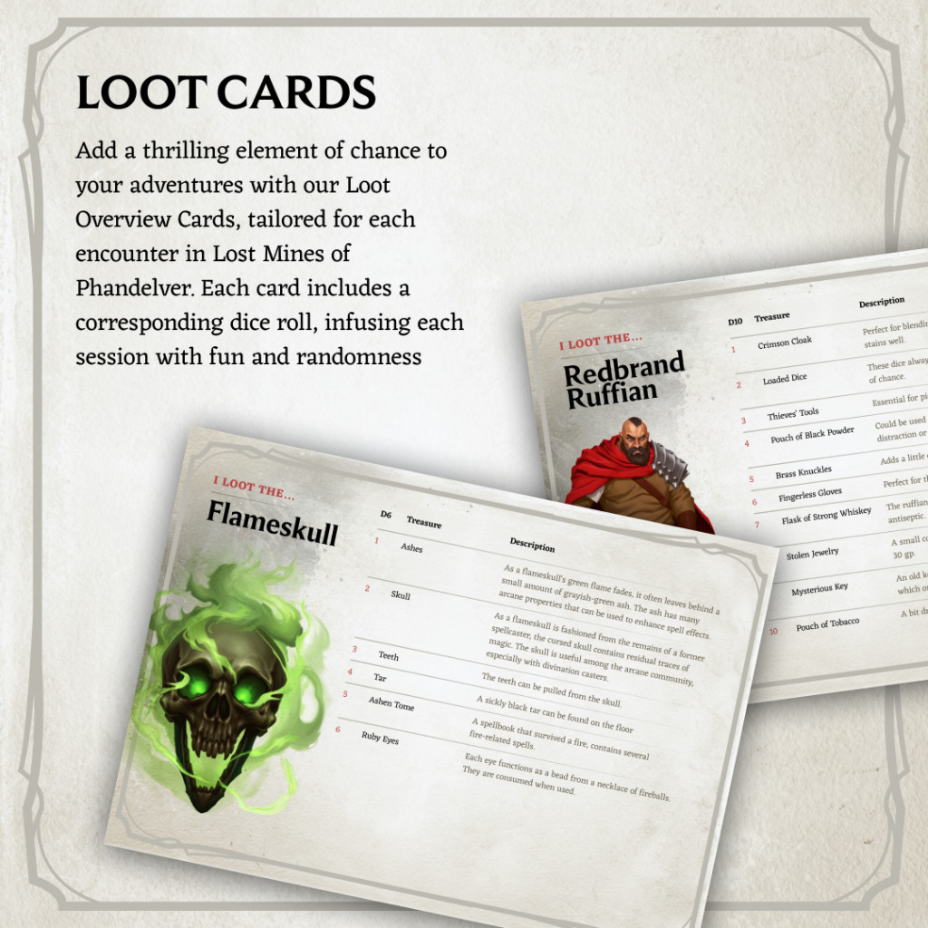 Conçu pour faire gagner du temps aux maîtres du donjon, ce pack PDF prêt à imprimer donne vie à chaque rencontre, personnage et lieu de la célèbre aventure LMoP sur votre table de jeu ou votre table de jeu virtuelle (VTT).