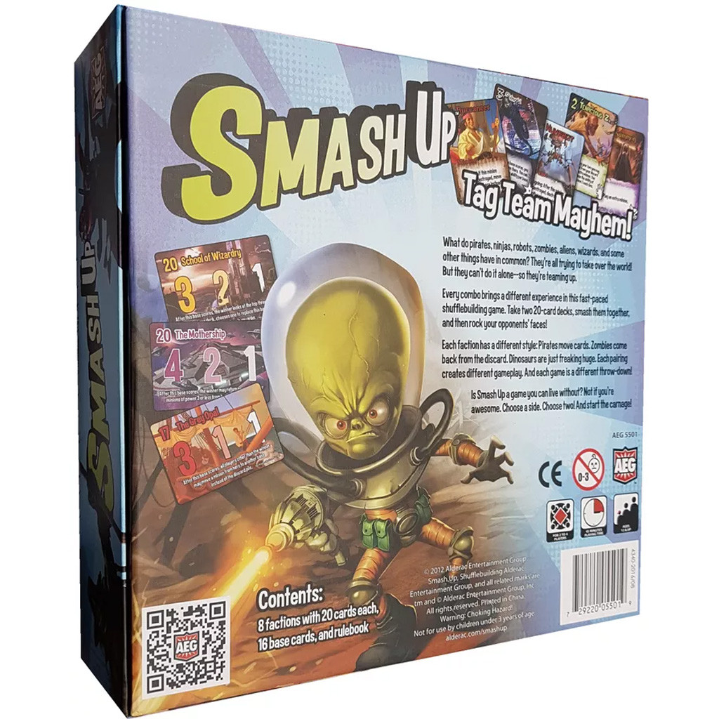 - Concept innovant de shufflebuilding : Smash Up commence sur une idée originale : combinez deux factions en mélangeant leurs decks de 20 cartes pour former un puissant deck de 40 cartes, puis partez écraser plus de Bases que vos adversaires.