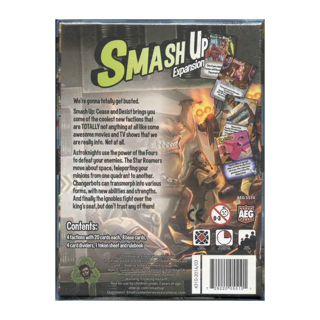 Préparez-vous à un affrontement épique entre factions dans Smash Up: Cease and Desist d’Alderac Entertainment Group. Cette extension introduit de nouvelles factions palpitantes, inspirées de vos films et séries préférés, apportant une touche cinématographique unique à vos batailles. Attendez-vous à une avalanche d’action, de surprises et de chaos hilarant !