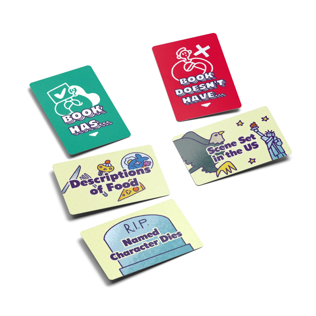 Au début de la manche, tirez une carte pour la colonne “Le livre a…”. Par exemple : “Un animal de compagnie”. Une fois que le groupe a nommé un livre correspondant à cette description, révélez la carte suivante. Si celle-ci convient au livre déjà nommé, ajoutez cette description à la colonne “Le livre n’a pas…”.
