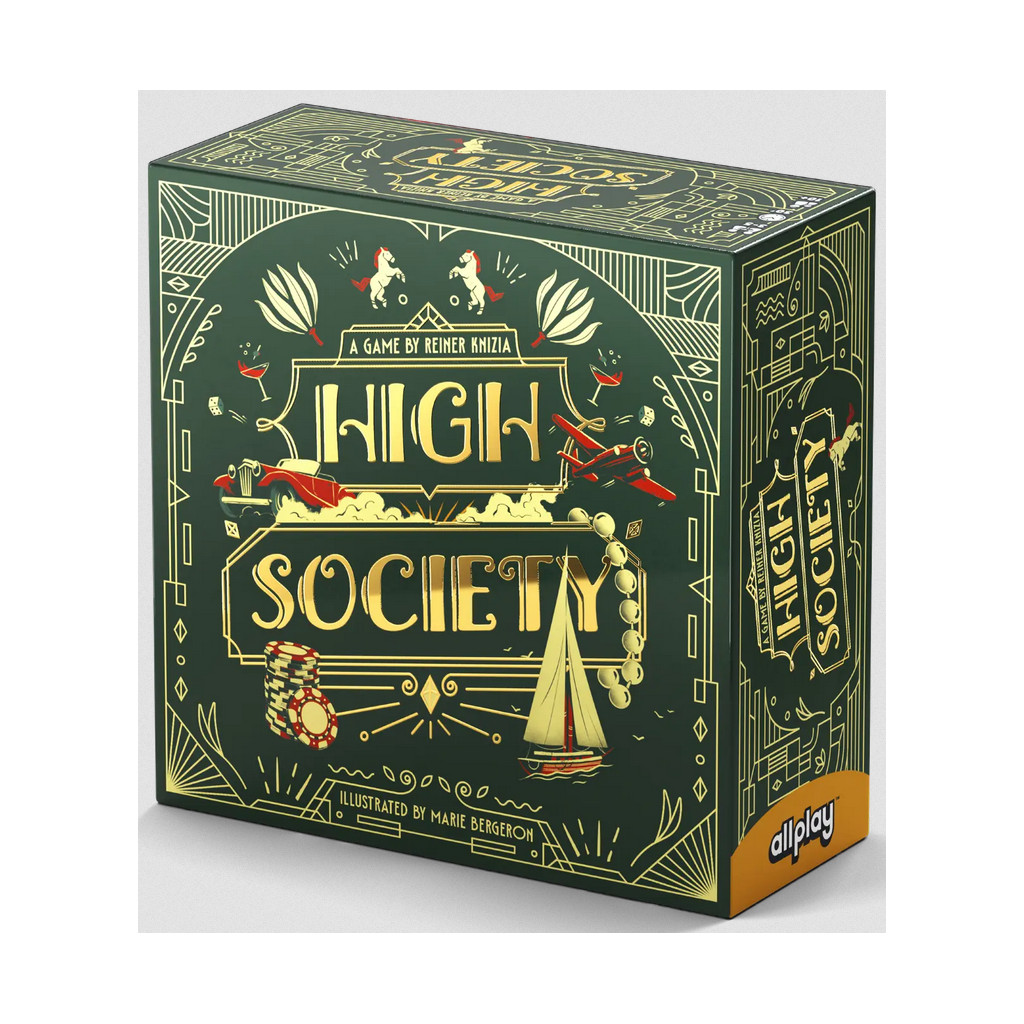 Dans High Society, vous et jusqu'à 4 de vos amis fortunés ferez étalage de votre richesse pour consolider votre place dans la haute société. Enchérissez sur des produits de luxe tels que des bijoux raffinés, du vin millésimé ou des places à l'opéra pour améliorer votre réputation. Mais attention aux scandales!