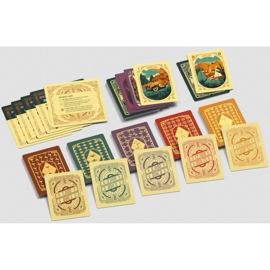 Enchérissez pour acquérir des cartes de valeur et des cartes multiplicateurs, tout en essayant d'éviter les pièges de la richesse (cartes négatives et cartes diviseurs). Attention: le joueur qui a le moins d'argent ne peut pas gagner!