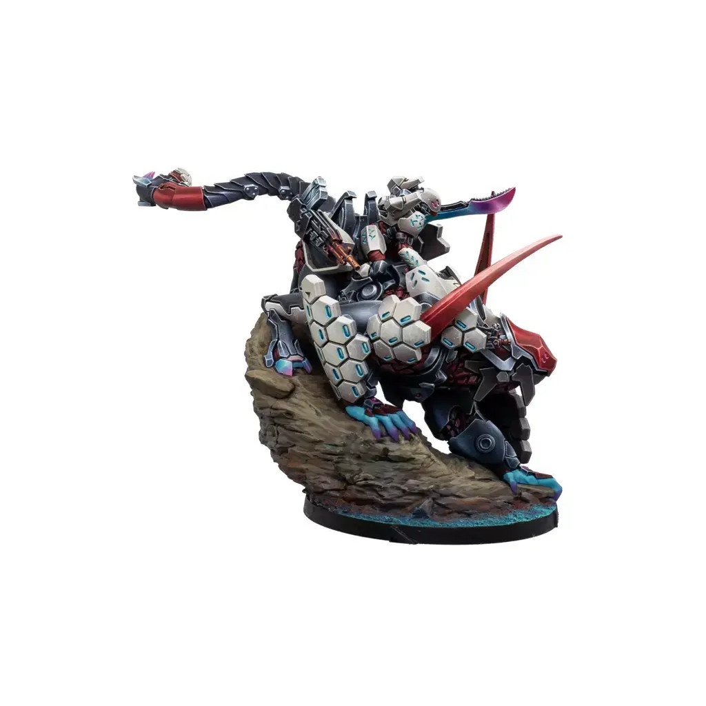 Une déferlante de rugissements frénétiques et de violence déchaînée fournit la force nécessaire pour balayer quiconque se trouve sur son chemin. C’est ainsi qu’a été créée la première unité de cavalerie blindée de Next Wave, un exemple parfait du potentiel que peut offrir la collaboration avec d’autres espèces de l’Hégémonie, ici une victoire obtenue au prix de dents et de griffes ensanglantées.