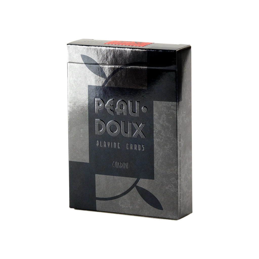 Ce jeu est une réplique moderne, au format poker, des cartes Peau Doux spéciales qu’utilisait Cardini dans son légendaire numéro de cabaret The Suave Deceiver. Parmi ses caractéristiques : une boîte inspirée du style vintage, imprimée avec une feuille argentée et une typographie embossée ; un timbre fiscal personnalisé, un as de pique unique et des jokers assortis représentant la silhouette de Cardini, illustrée par Wade J. Callender.