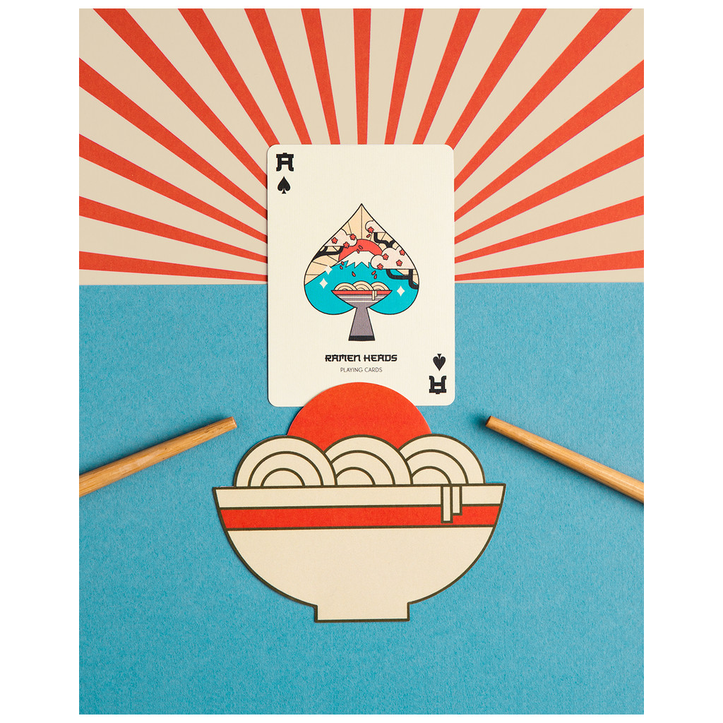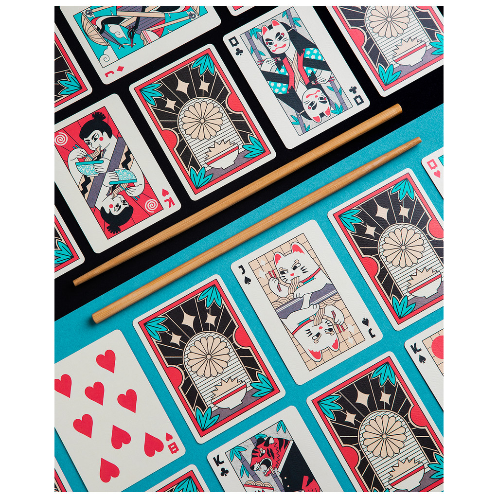 Qui n’aime pas un bol de ramen ? Nous avons collaboré étroitement avec l’illustrateur Jannik Stegen pour créer un jeu de cartes sur le thème du ramen. Inspiré du design graphique japonais vintage, ce jeu unique comporte douze figures personnalisées représentant des personnages ludiques de l’histoire riche du Japon, tels que Godzilla, un robot jouet, un lutteur de sumo et un samouraï, pour ne citer que quelques-uns des personnages originaux,