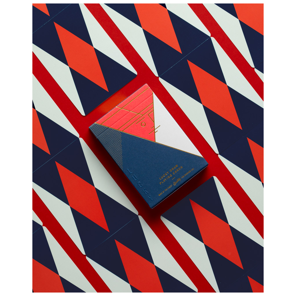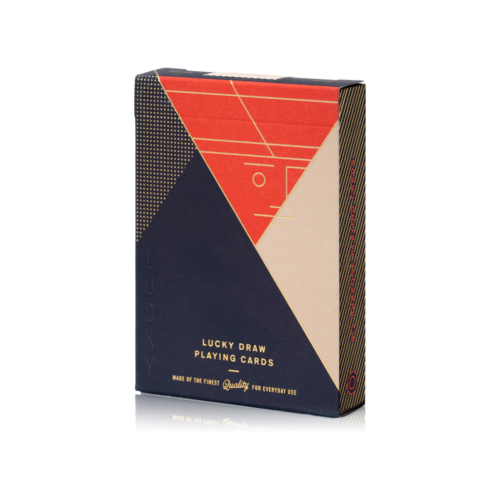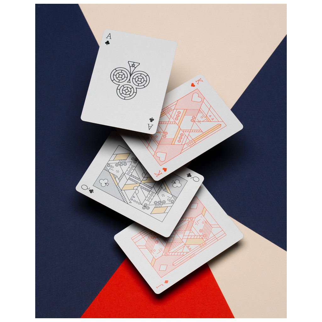 Ce magnifique jeu de cartes présente un dos minimaliste sans bordure, composé de trois couleurs, ainsi que des figures personnalisées. Les cartes sont emballées dans un luxueux étui imprimé en letterpress, avec gaufrage et accents en feuille d’or.
