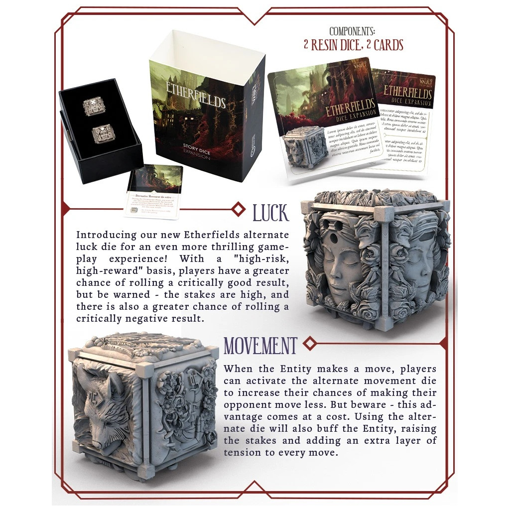 Découvrez les nouveaux dés alternatifs pour le jeu Etherfields Chance et Mouvement pour une expérience de jeu encore plus palpitante ! Les dés sont fabriqués en résine de haute qualité.