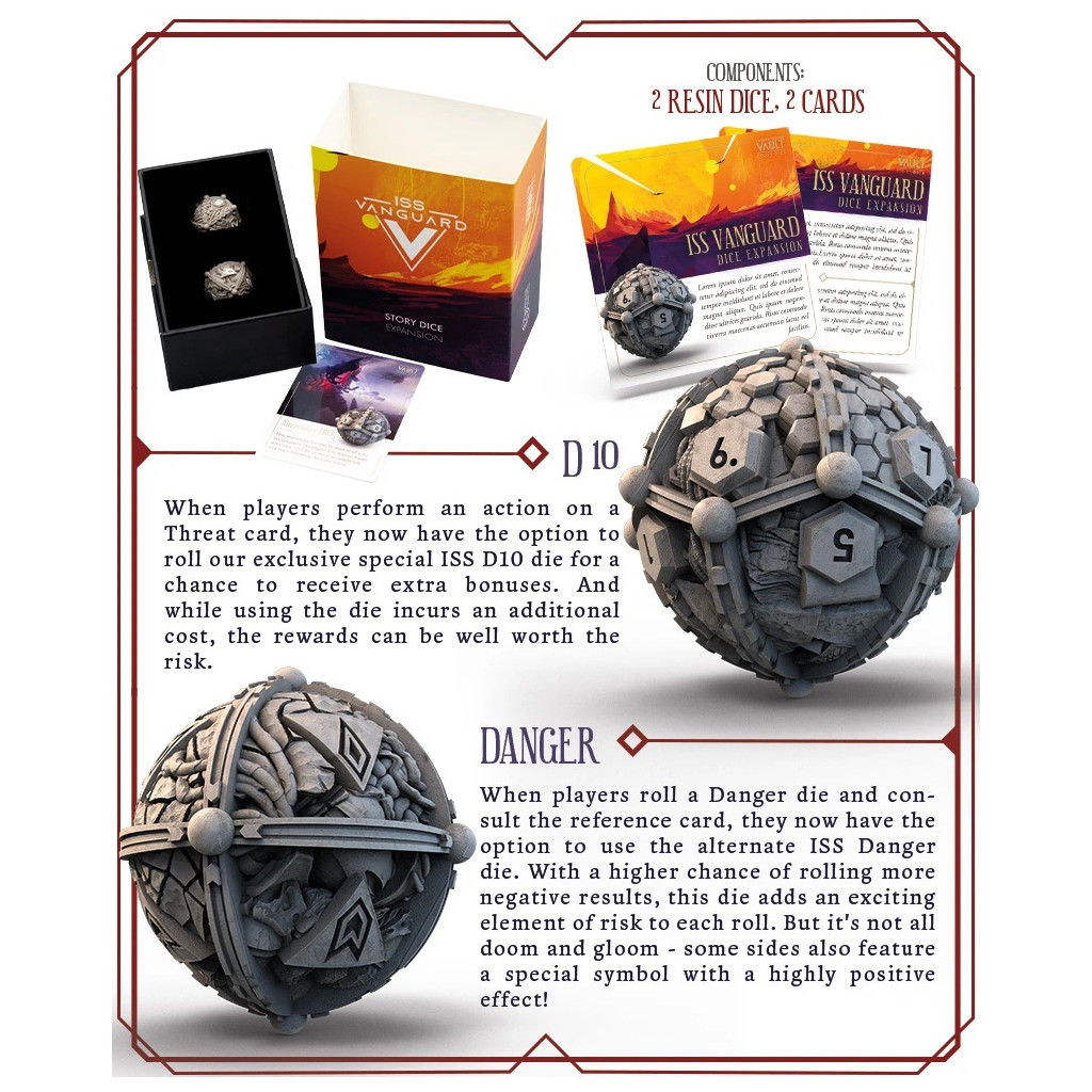 Les dés D10 et Danger apportent un nouvel élément tactique au gameplay d'ISS Vanguard. Les dés sont fabriqués en résine de haute qualité.
